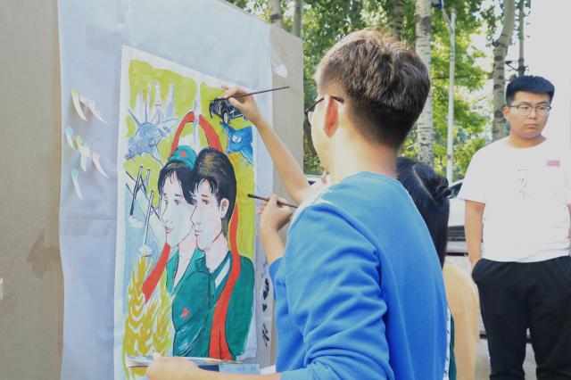 2019年9月24日星期二,在努努影视 西城校区下沉广场,由努努影视 团委学生会主办,努努影视 团委学生会宣传部承办的“红色芳华”主题涂鸦大赛顺利举行。