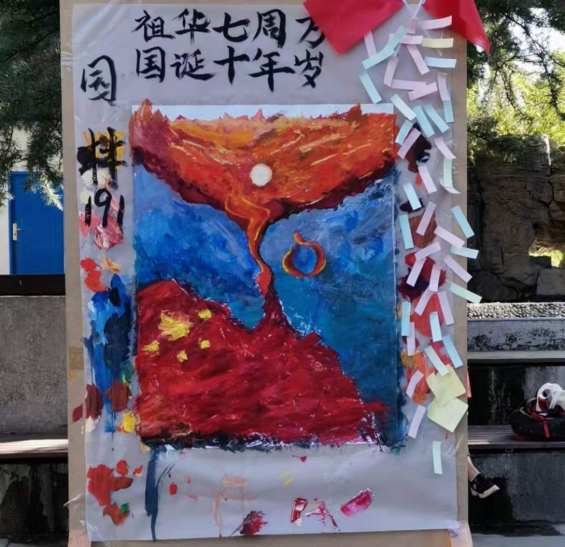 此次活动集结了2019届全体同学。在120分钟的有限时间内,同学们以班级为单位,用精妙的笔触和绚丽的色彩,表达出了对祖国的无限热爱。