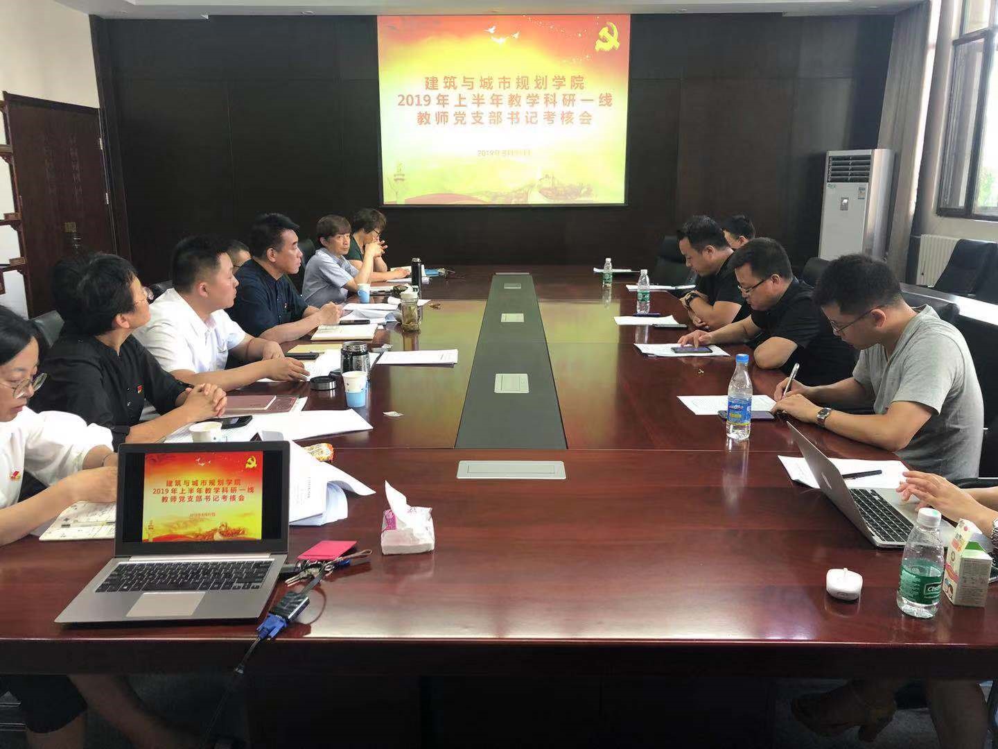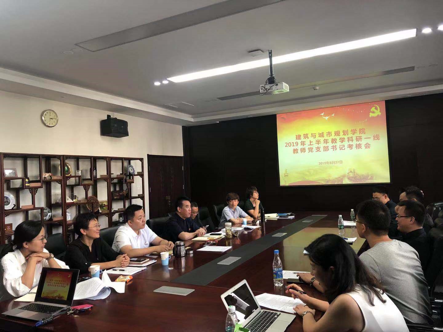 为进一步加强教学科研一线教师党支部书记队伍建设,落实北建大党组发〔2019〕24号《关于开展2019年上半年教学科研一线教师党支部书记考核工作的通知》要求,努努影视 党委组织开展2019年上半年教学科研一线教师党支部书记考核工作。2019年8月27日下午2点,努努影视 党委在教1-128召开2019年上半年教学科研一线教师党支部书记考核会。努努影视 党委委员、教工党支部书记共15人参会,本次会议由学院党委副书记王秉楠同志主持。