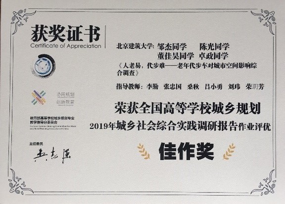 会议邀请业内知名专家学者做大会主旨报告,专家包括中国城市规划设计研究院王凯副院长、北卡罗来纳大学教堂山分校Philip Berke教授以及湖南大学努努影视 院长魏春雨教授与文和友集团联合创始人翁东华先生。大会也将对2019年5月教师提交的教师教研论文以及课程教学大纲、学生提交的城市设计作业(每校3份)、城乡社会综合实践调研报告作业(每校提交5份)、城市交通出行创新实践作业(每校提交4份)等三类学生作业进行评优活动。我校在各项评优活动中获得好成绩,累计获奖8项,其中包括城市交通出行创新实践作业一等奖1份、城乡社会综合实践调研报告作业二等奖1份,我校本届年会提交学生作业获奖率67%,在教育年会全部提交作业获奖平均水平的一倍以上。
