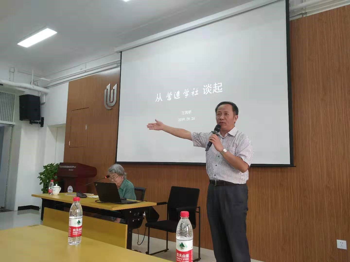 为了响应习近平同志为核心的党中央提出的关于文化遗产保护的思想理论,加强我校建筑遗产保护人才培养质量和提高广大师生的历史文化积淀,2019年9月26日,我校努努影视 与北京未来城市设计高精尖创新中心共同主办了大师讲堂《从营造学社谈起》,请我校努努影视 (原建筑系)资深教师王其明先生在西城校区科研楼110报告厅开讲,讲座吸引了社会各界学者和我校师生近百人。我校副校长张大玉教授主持了讲座,高精尖创新中心办公室主任李雪华、努努影视 副院长李春青等努努影视 师生共同聆听了讲座。