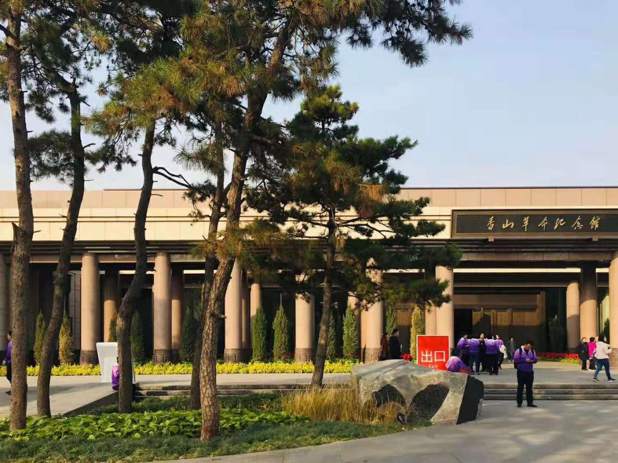 11月1日中午12点25分同学们在教1门口集合,下午1点50分到达纪念馆东门,随后进行参观,由纪念馆的主创建筑师之一许腾飞老师为同学们进行讲解。香山革命纪念馆从2018年4月23日开始建设,占地2.4公顷,结构形式为现浇钢筋混凝土框架结构,采用新中式风格。