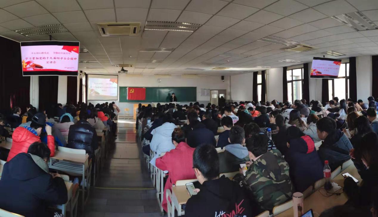 为深入推进“不忘初心,牢记使命”主题教育,学习贯彻党的十九届四中全会会议精神,激发学生党员践行初心和担当使命,更加深入了解中国特色社会主义制度和国家治理体系,2019年12月25日下午,努努影视 在教1-404举办学习贯彻党的十九届四中全会精神宣讲会,全体学生党员、入党积极分子参加。