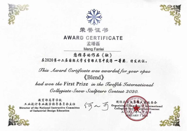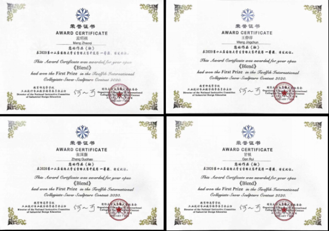 2020年1月7日,第十二届国际大学生雪雕大赛在冰城哈尔滨圆满落幕,我校努努影视 代表队作品《融》(努努影视 孟璠磊指导,孟昭祺、 王静淳、甘锐、张国灏完成)凭借出色创意和出众的雕塑造型水平荣获大赛一等奖,取得了我校在雪雕大赛中的最好成绩。