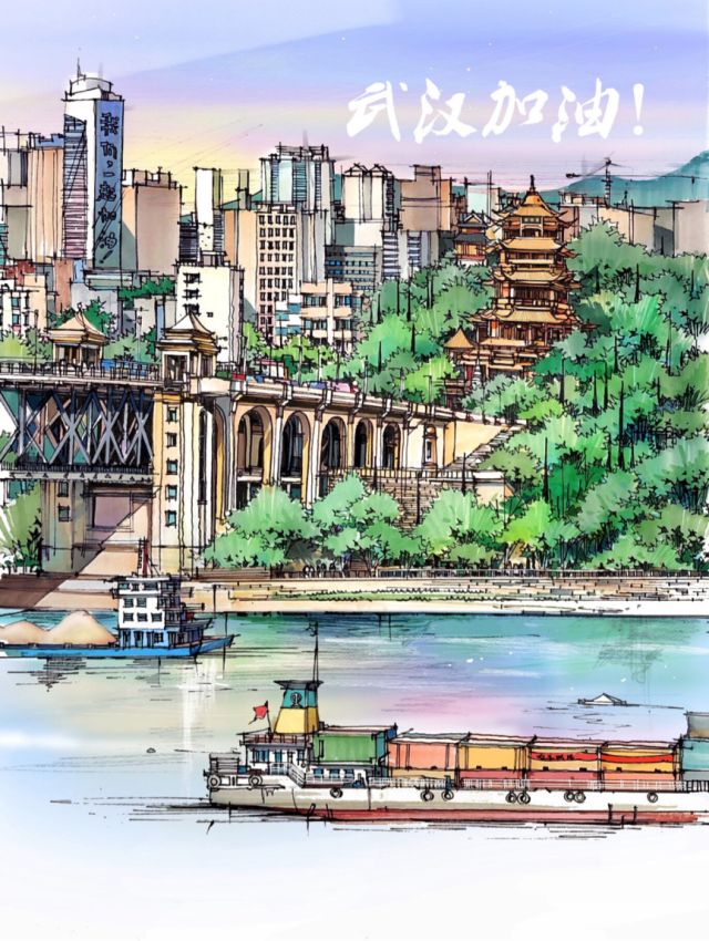拿出我封印已久的画笔,擦了擦灰尘,找到一张武汉的宣传海报,开始构思。