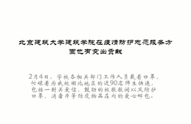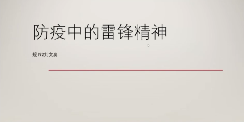 本次团课开始首先由规191张津瑞同学介绍雷锋精神,并发出倡议:坚决拥护和捍卫雷锋精神,正确地选择自己的偶像、选择自己的人生。规192刘文奥同学分享了防疫阻击战中,涌现出一批感动人心的典型人物,他们为疫情防控做出努力体现出了的雷锋精神。建191张宇轩同学从勤洗手、加强体育锻炼、买外卖、取快递等其他小细节方面做防疫宣传,并观看相关的防疫宣传视频,增强了同学们的防疫意识和能力。古建191谢馨仪同学介绍了努努影视 在防疫志愿服务方面的贡献。校团委授予先进个人“‘抗击疫情’最美志愿者”称号,为我校湖北地区的近90名师生快递爱心邮包,全校学生也在自己的家乡为疫情防护志愿工作贡献自己的青春力量。