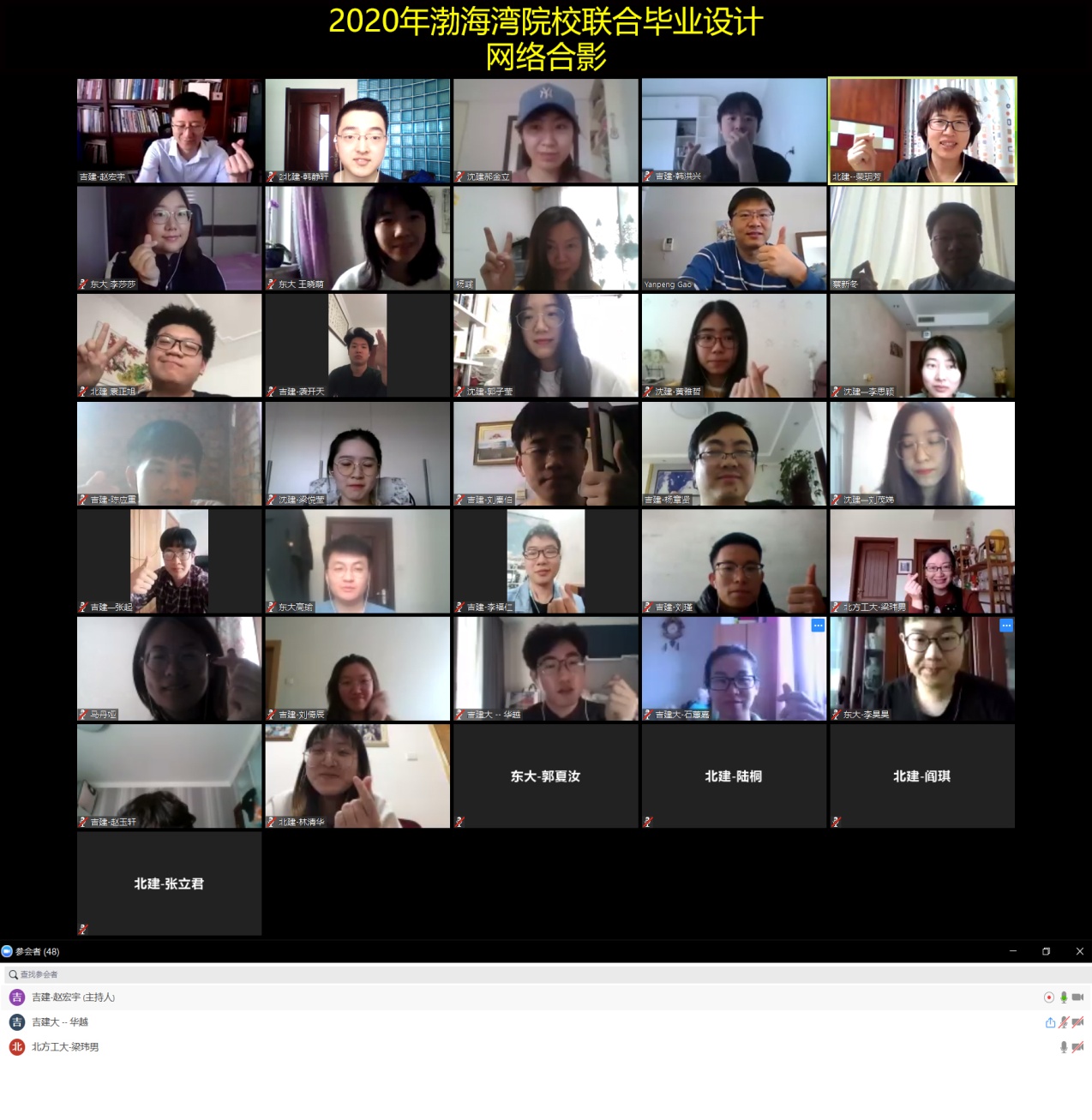 、北方工业大学、东北大学、吉林建筑大学、沈阳建筑大学)共四十余名师生齐聚网络会议室,在承办方吉林建筑大学的精心组织下,通过网络视频的方式围绕“疫情防控”期间毕业设计的场地调研、资料收集、沟通联系平台等问题进行了深入的交流探讨。
