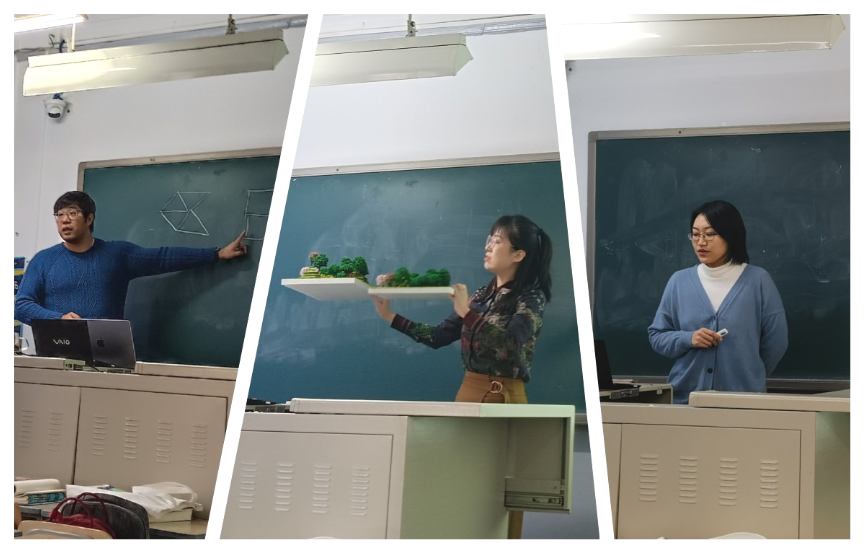 建筑系贾园、建筑技术部徐跃家、风景园林系李露三位教师依次登场,按照学校比赛要求,每人进行15分钟的课堂讲述。每名评委对参赛教师逐一进行点评,针对讲授的内容、语言组织形式、汇报ppt排版等具体细节提出了自己的详细建议。