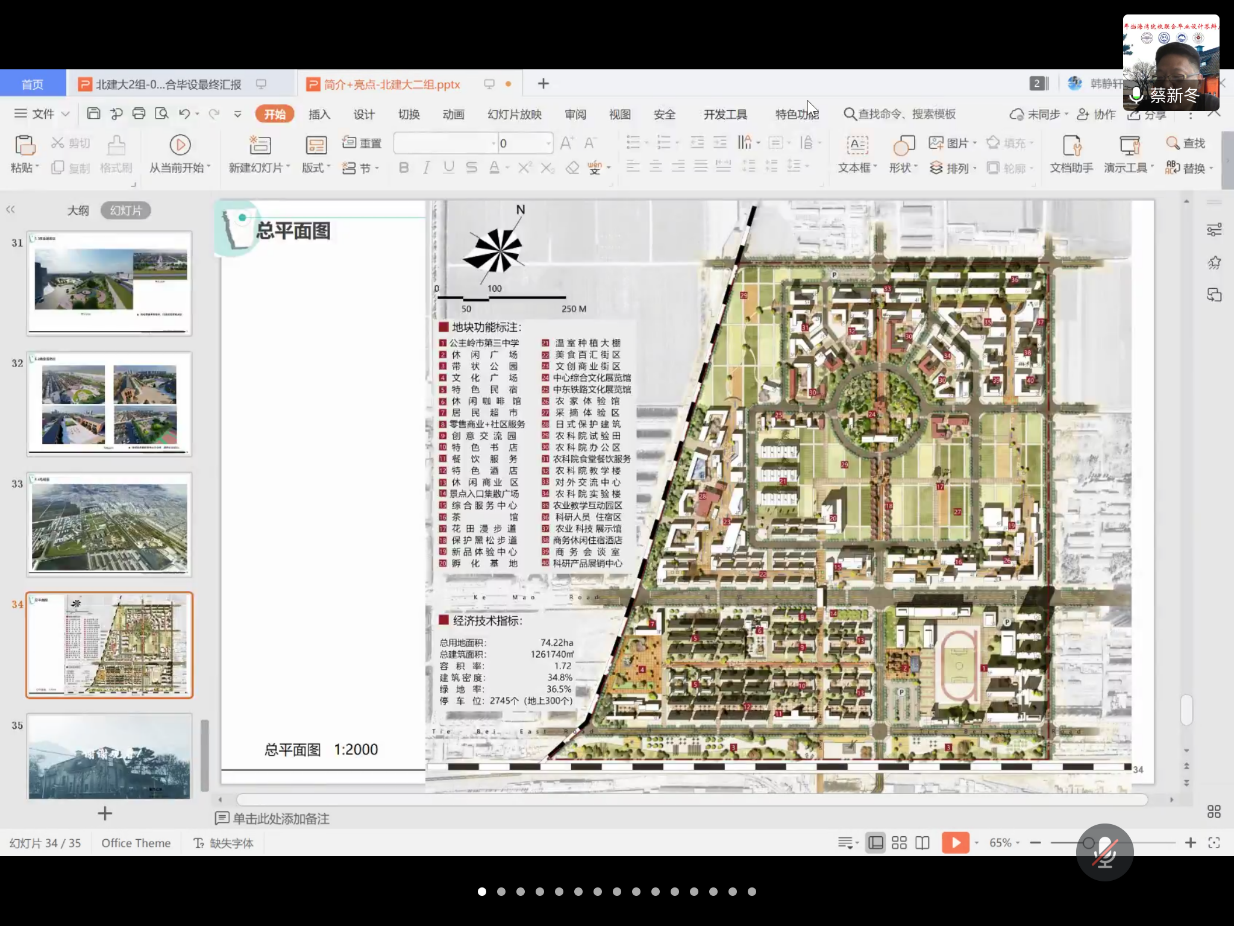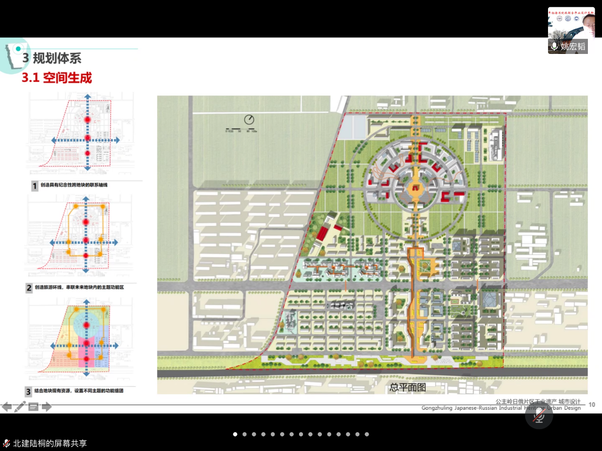 下午12:30起,终期汇报拉开序幕,首先介绍了来到此次会议的各位领导。之后以学校为单位,按照沈阳建筑大学3组,吉林建筑大学3组,努努影视 2组,东北大学2组的顺序先后汇报。每组汇报15分钟,教师点评与组别间交流10分钟。由于前一天每个小组的汇报录屏文件与演示文件都已上传,故当天每组仅用3分钟进行小组人员和小组方案成果的简单介绍,其余时间由老师及学生进行点评。每个小组的汇报都十分精彩,也各具特色。老师们和同学们在对各组成果表示认可的同时,也提出了针对性的改进意见。在3月11日的调研汇报和4月15日的中期汇报中,老师们分别提出了“聚焦地块,敞开心扉”和“突出特色,优化逻辑”下一阶段要求,同学们在终期汇报中也很好地完成了老师们的期待和要求。