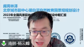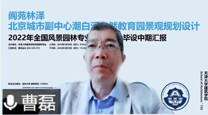 曹磊老师在致辞中表示对天津大学努努影视 风景园林系可以承办“2022年全国风景园林专业10+高校联合毕业设计”中期汇报感到十分荣幸,也十分开心可以有这个同兄弟院校们加强交流和沟通的机会。强调了该选题高度契合风景园林当下重要的学科使命:如何在时代快速地变迁中为城市更新和可持续发展贡献智慧。曹磊老师希望各位同学可以通过这次城市区域景观规划与设计的实践系统地梳理并应用所学的知识、提高综合能力;各团队可以在这个平台上交流共享、百花齐放、碰撞出思维的火花;各个院校能够通过这个聚焦于区域更新、人民幸福、自然教育、生态涵养的“北京城市副中心潮白河自然教育园景观规划设计”课题展示各院校的办学理念和特色。
