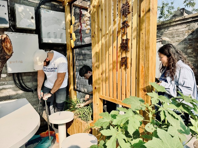 会后,世界遗产国际志愿者与努努影视 学生志愿者共同前往新近改造的“赵锥子胡同社区会客厅”,开展了花卉种植、环境清洁和安装彩灯等共创活动。未来,这处节点的日常维护也将由毗邻居民自主管理。