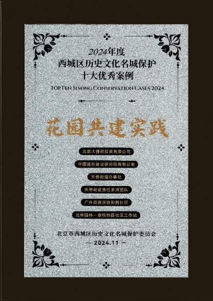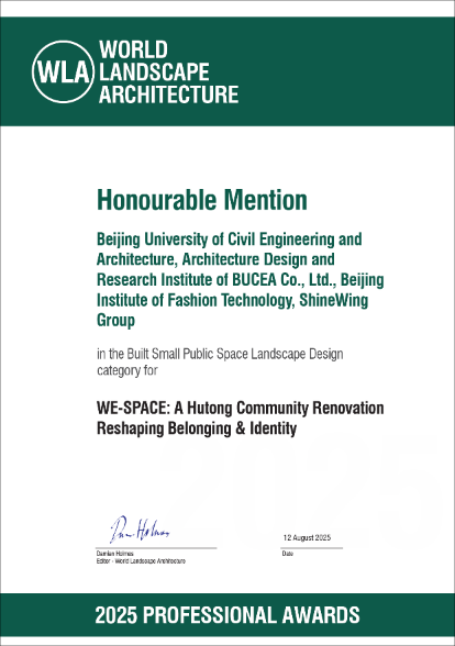 在街道、社区、居民、责任规划师团队密切合作下,天桥街道小微公共空间更新的探索已屡获殊荣:2024 年入选西城区历史文化名城保护十大案例,2025年荣获世界景观建筑奖(WLA Awards)荣誉提名奖(Honourable Mention)。丰富的实践经验表明,小微空间不仅是改善人居环境的重要抓手,更是推动基层治理的有效路径。通过议事协商机制,可以充分激发居民和利益相关方的积极性,实现全过程、多主体参与。