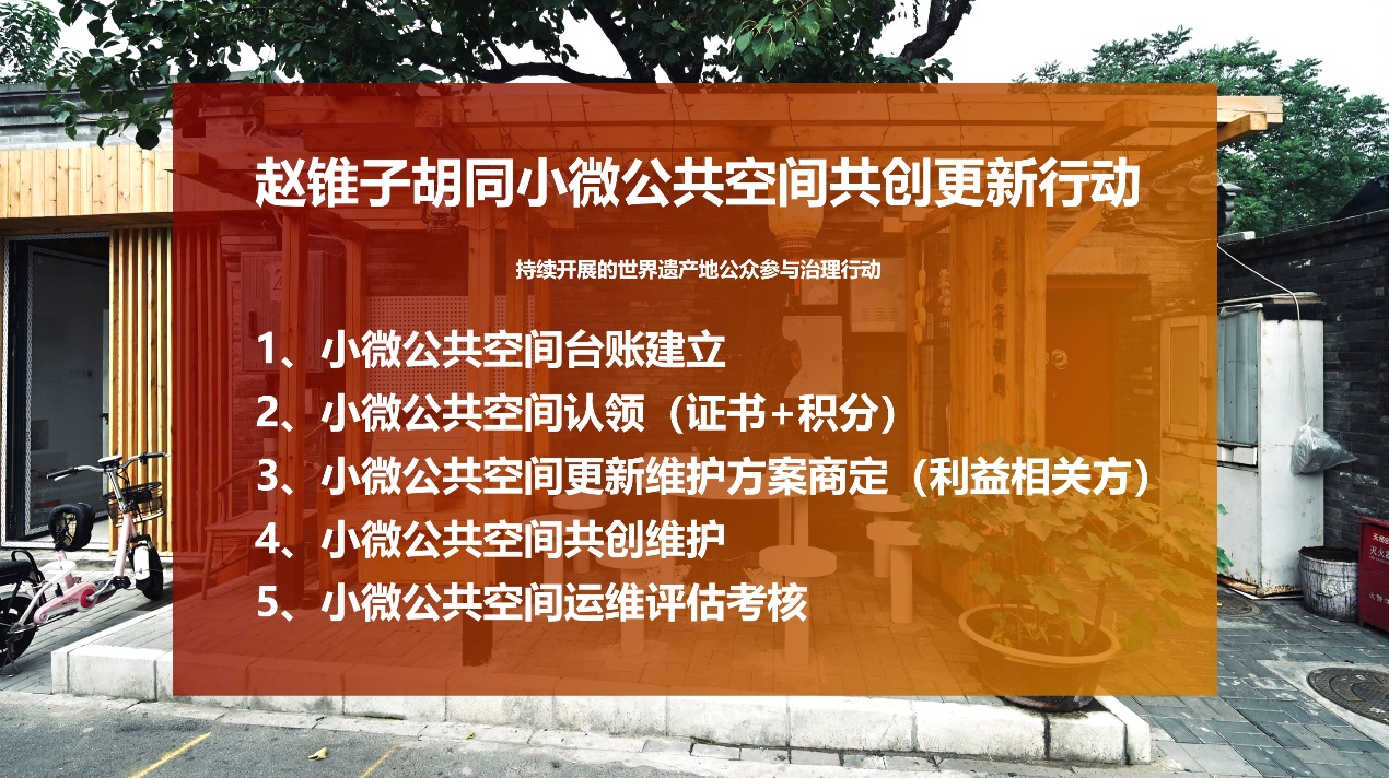“赵锥子胡同小微公共空间共创更新行动”也是天桥街道责任规划师团队主持的联合国教科文组织2025世界遗产志愿者项目(UNESCO World Heritage Volunteers 2025 Campaign)“面向未来的城市遗产——天桥历史文化街区活态保护与有机更新志愿服务项目”(Urban Heritage for the Future – Tianqiao Historical and Cultural Block Living Preservation and Organic Restoration Volunteer Service Project)的重要组成部分。作为世界遗产地持续开展的公众参与实践,它旨在抓住空间更新的契机,依托社区协商机制,推动多元主体协同,回应“环境美化与生活改善”“民生保障与产业发展”“城市更新与社会治理”等关键议题。
