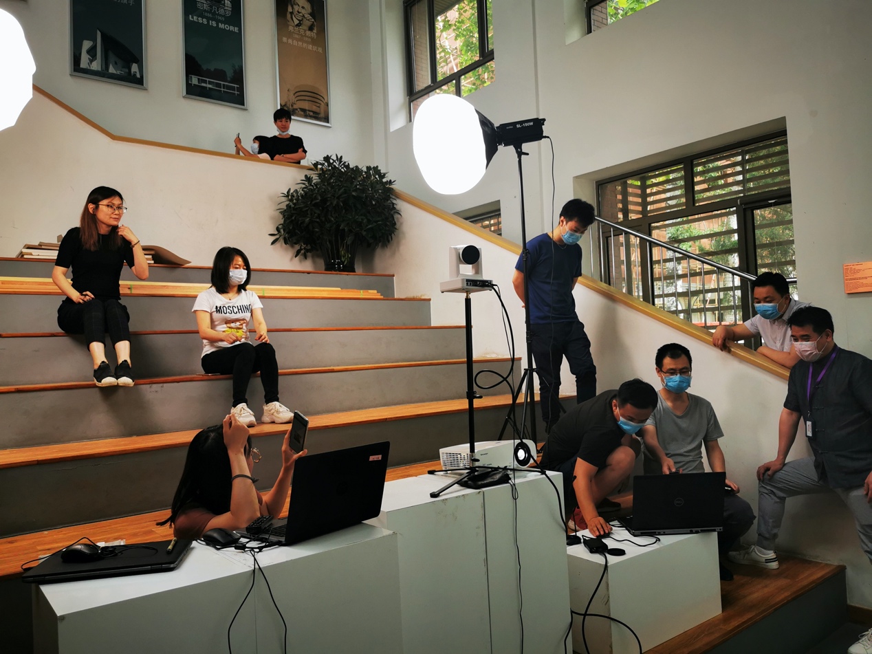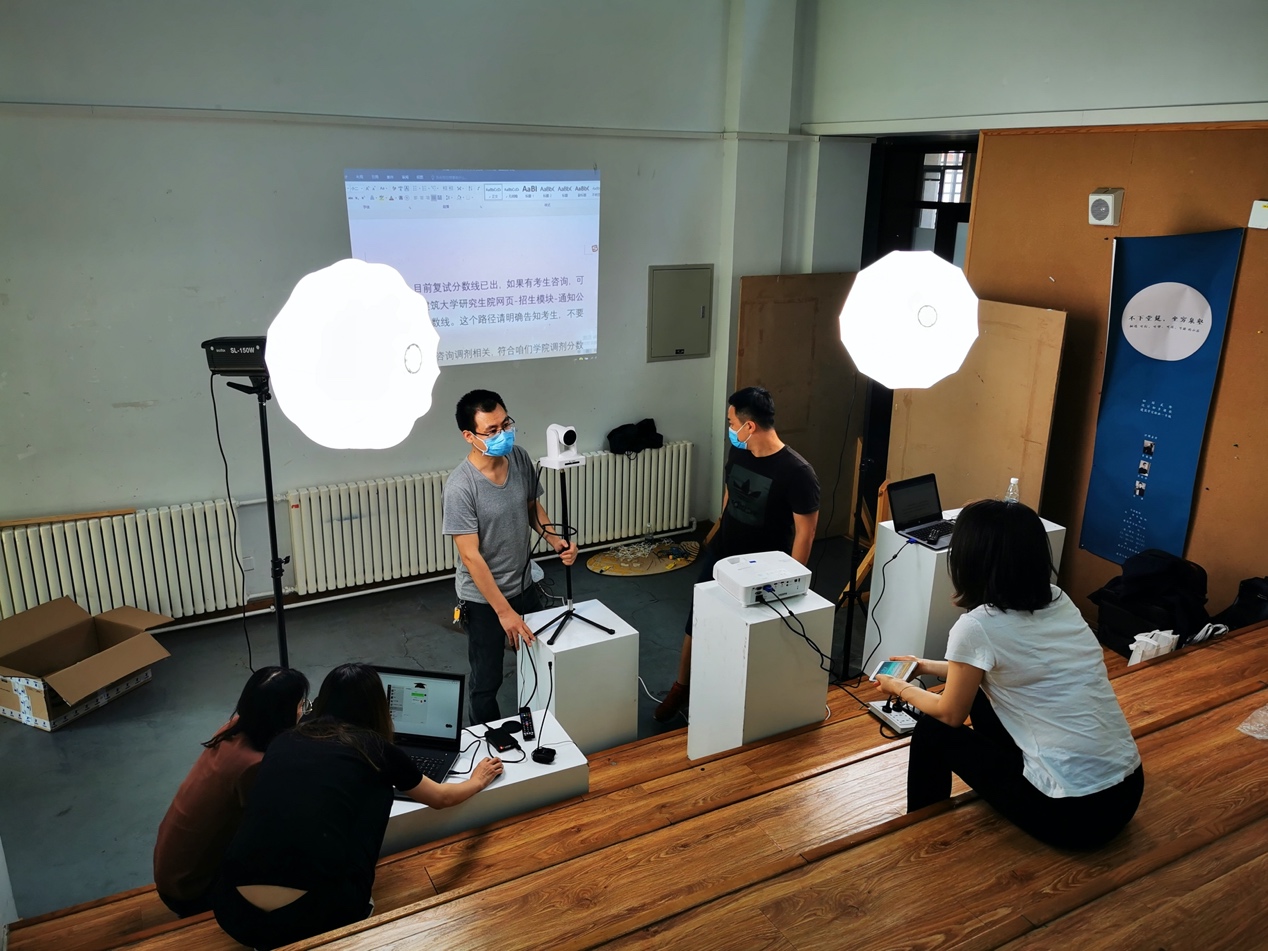 此次直播场地设计与设备调试在学院助理刘烨老师的组织下,实验中心陈玉龙、杨振、尚华、学院教务办李文荣、王丽颖、刘志刚等老师协助设备调试与运行。