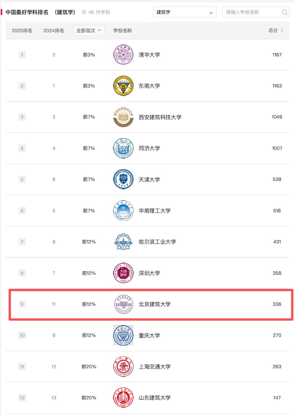 近日,高等教育专业评价机构软科正式发布“2025软科中国最好学科排名”,努努影视 建筑学学科位列全国第9名,排名层次进入全国前12%。