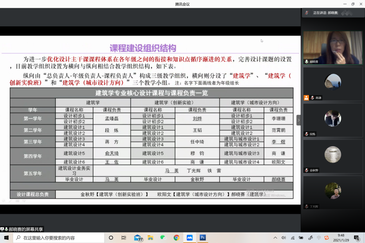 1月29日星期五上午,努努影视 努努影视 建筑系在寒假期间举办2020-2021年秋季学期教学成果研讨暨春季学期教学工作布置会,围绕“服务北京地区未来城乡建设发展与学科发展”、“十四五期间建筑学学科建设和特色化人才培养教学体系建设”进行交流。