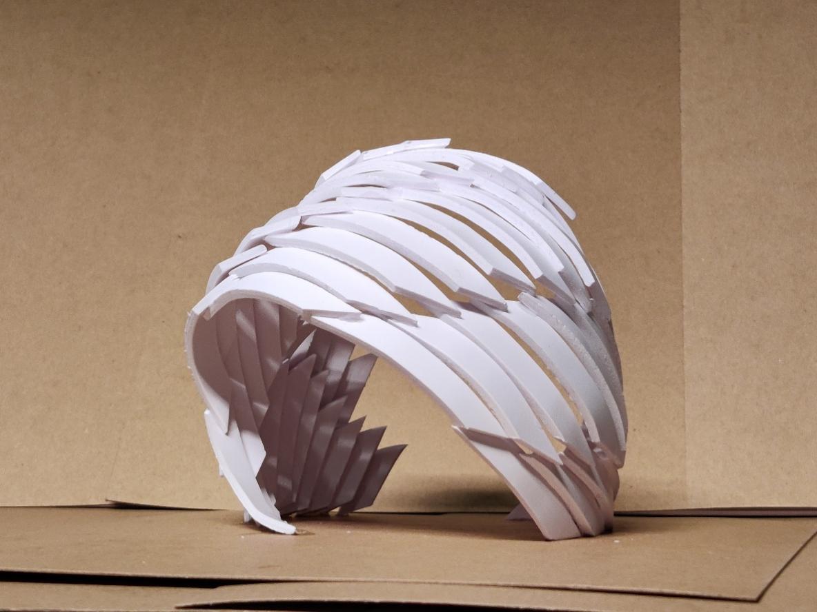 指导老师点评:参数化似的手工模型表现出强烈的雕塑感,真正的材料实施过程中由于自重问题会导致形体出现偏差,所以再之后的推敲中对于外形和具体落地时搭接方式的选择还需斟酌。