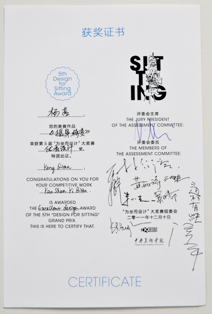 由我校工业设计专业2009级学生杨茜的作品《摇身椅变》,林婉嫕《坐与玩-积木游戏》获得入围,其中杨茜的作品《摇身椅变》喜获该项国际大赛优秀设计奖。指导教师为设计艺术系阚玉德、杨琳老师。