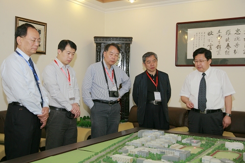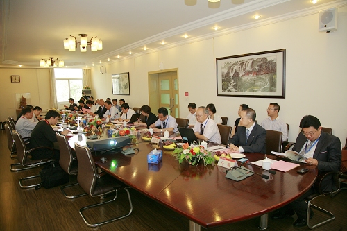 院长刘临安教授从学校概况、院系和专业现状、办学思想、目标与办学特色、教学、学生培养情况、科研、生产及学术交流、学科发展总结等多个方面向评估专家及与会全体校领导做了全面、详细地汇报。王建国教授及各位专家认真听取了汇报,并就汇报情况与学校领导进行了进一步的沟通。