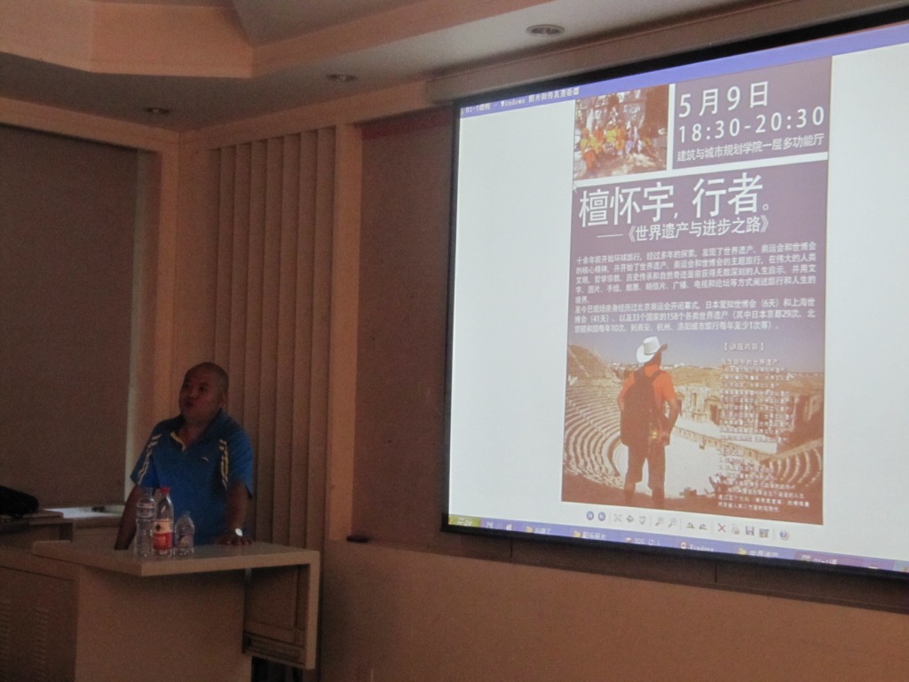 多功能报告厅举办。著名旅行学者、摄影师檀怀宇满怀激情得为学生们做了一场生动形象的关于世界遗产的报告。