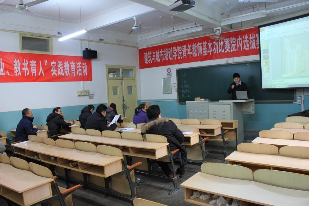 组织学校教师基本功比赛院内选拔赛,由学术委员会成员、班子成员、系部中心主任、教授代表组成的评审专家组,根据学科和专业方向,分成两个评审小组对10位青年教师进行评审。青年教师每位青年教师用普通话讲授20分钟,演示完毕后专家直接对青年教师的板书情况、教学语言、教态、教育技术手段、教学内容等多个方面进行评比。最后两组评审专家合议本次教学演示存在的问题。