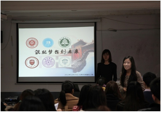 和北京工业大学协办的“筑就梦想划未来”——第二届京津规划建筑类高校研究生交流活动于北京大学举行。来自清华大学、北京大学、北京建筑工程学院、北京工业大学、北京林业大学以及天津大学等京津地区6所建筑规划类院校的100多名在校研究生、博士生参加此次交流活动。活动的目的是为了加强学校间的学术交流,增加学生间的相互了解。