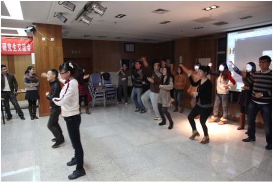 下午,于北大新化学南楼活动室举行了联谊活动,各校代表带来了精彩的文艺表演,大家齐聚一堂,欢声满院。其中我校高炎同学进行了精彩的太极和双节棍武术表演,压轴节目是我校李梦竹、马效以及王雯等学生会成员的集体舞蹈表演“江南style”。