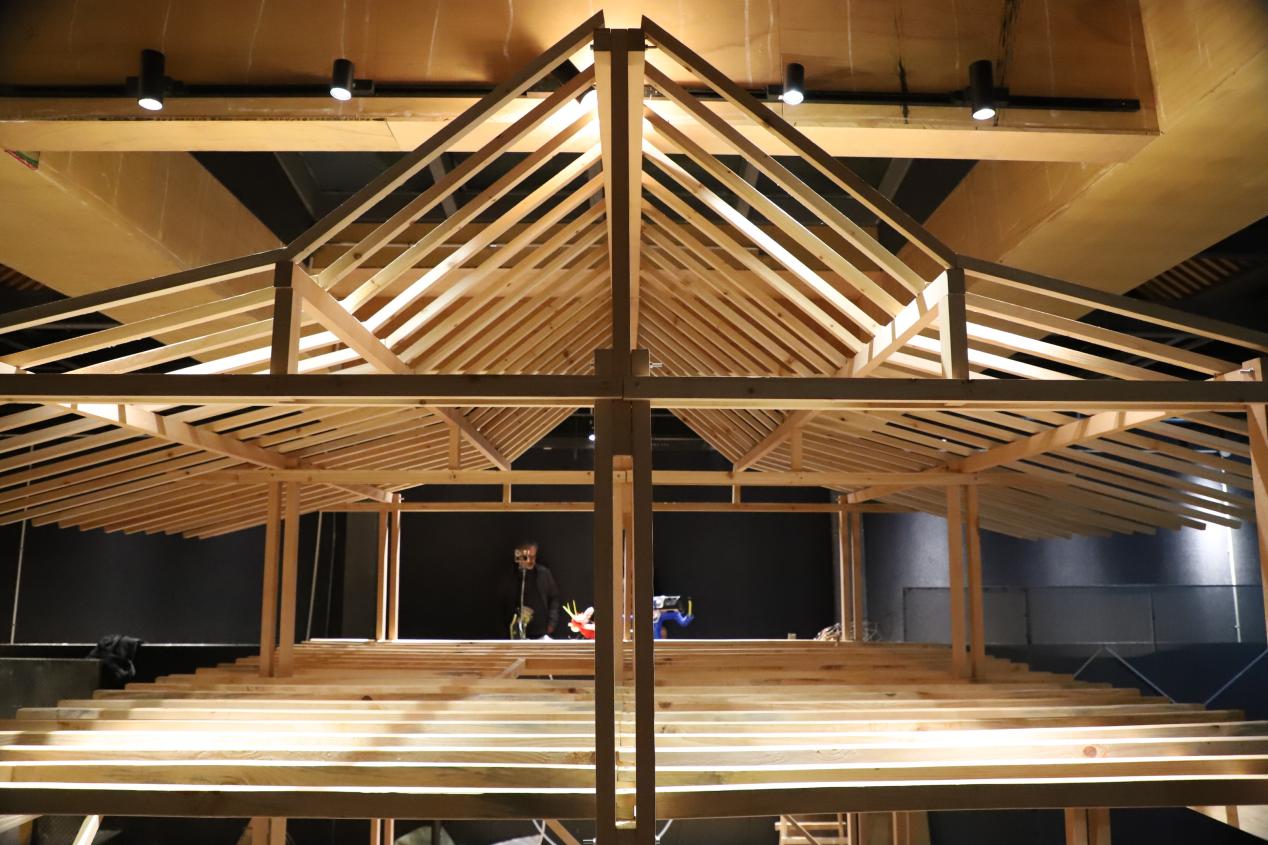 在工作营的组织中,老师同学们本次营造大集活动以“房中房”为主题,于10月17日正式启动,参与建造的20名志愿者大学生在任丛丛副教授的带领下,以中国古代建筑的结构为原型,在十多天的时间内完成了队伍组建、方案设计、材料采购、手工模型制作、构件制作、实地搭建等工作;并且同国际团队—aKoFF异样剧场艺术家展开合作,将最终成果作为剧场艺术家演出使用的真实舞台。在紧迫的时间和繁重的任务压力下,大家参与同学齐心协力、各尽其职、不辞劳苦,最终出色的完成了此次“营造大集”搭建活动,并从中体验到了真实的木结构营造过程。学校学院领导对建造成果给予了高度评价。,北京日报、北京广播电视台等多家媒体也进行了报道。这是我校第二次联合教学与营造活动,很好地推进了我校教学改革、提升人才培养质量,同时在更广泛的社会范围内获得展示并发挥了重要的科普与创新的推广作用。