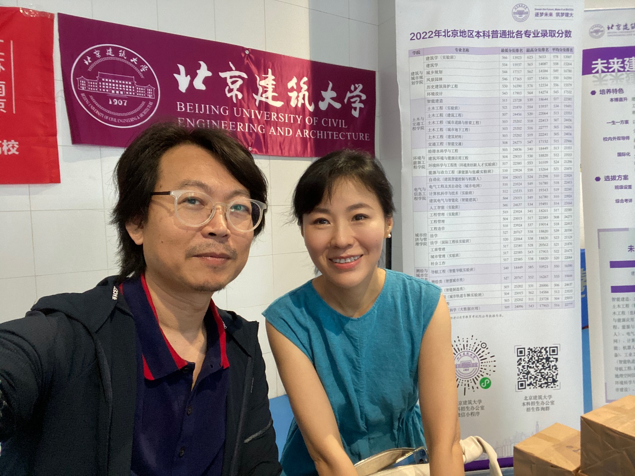 李珊珊、单彦名老师在西城外国语学校高招咨询