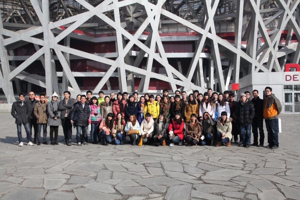 3月3日,6校师生在谭工和胡工的带领下,进入鸟巢内部实地调研。同学们认真聆听两位工程师的讲解,并与指导教师一起和工程师交流。同学们手拿图纸和笔,边参观边记录,为设计做起初准备。从地下一层到六层,同学们逐一实地勘测,力求深入、全面地了解鸟巢室内现状。
