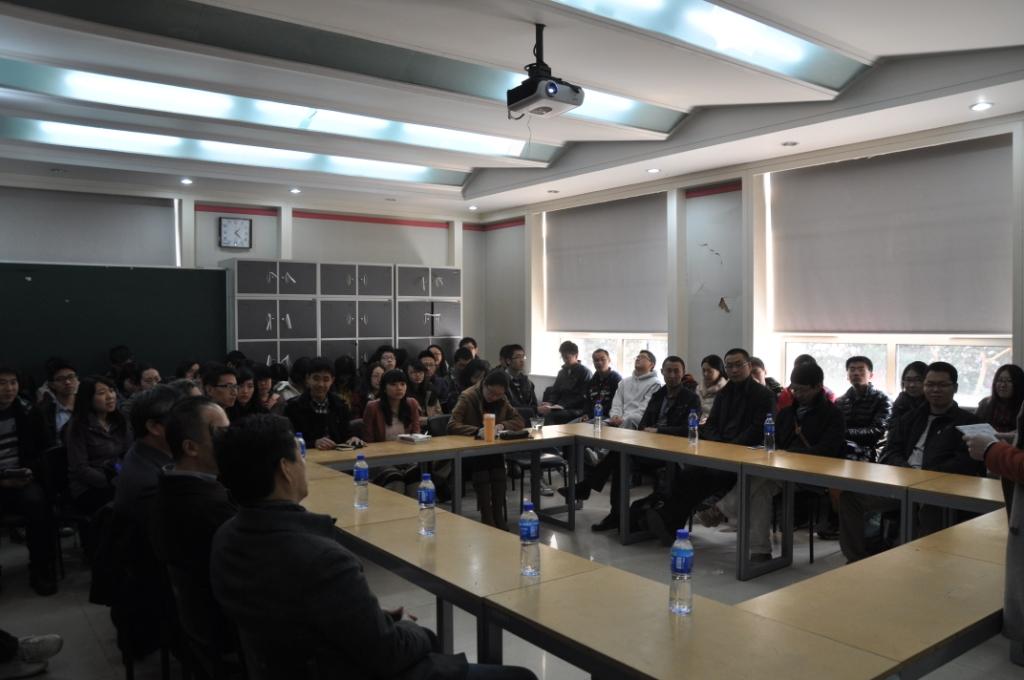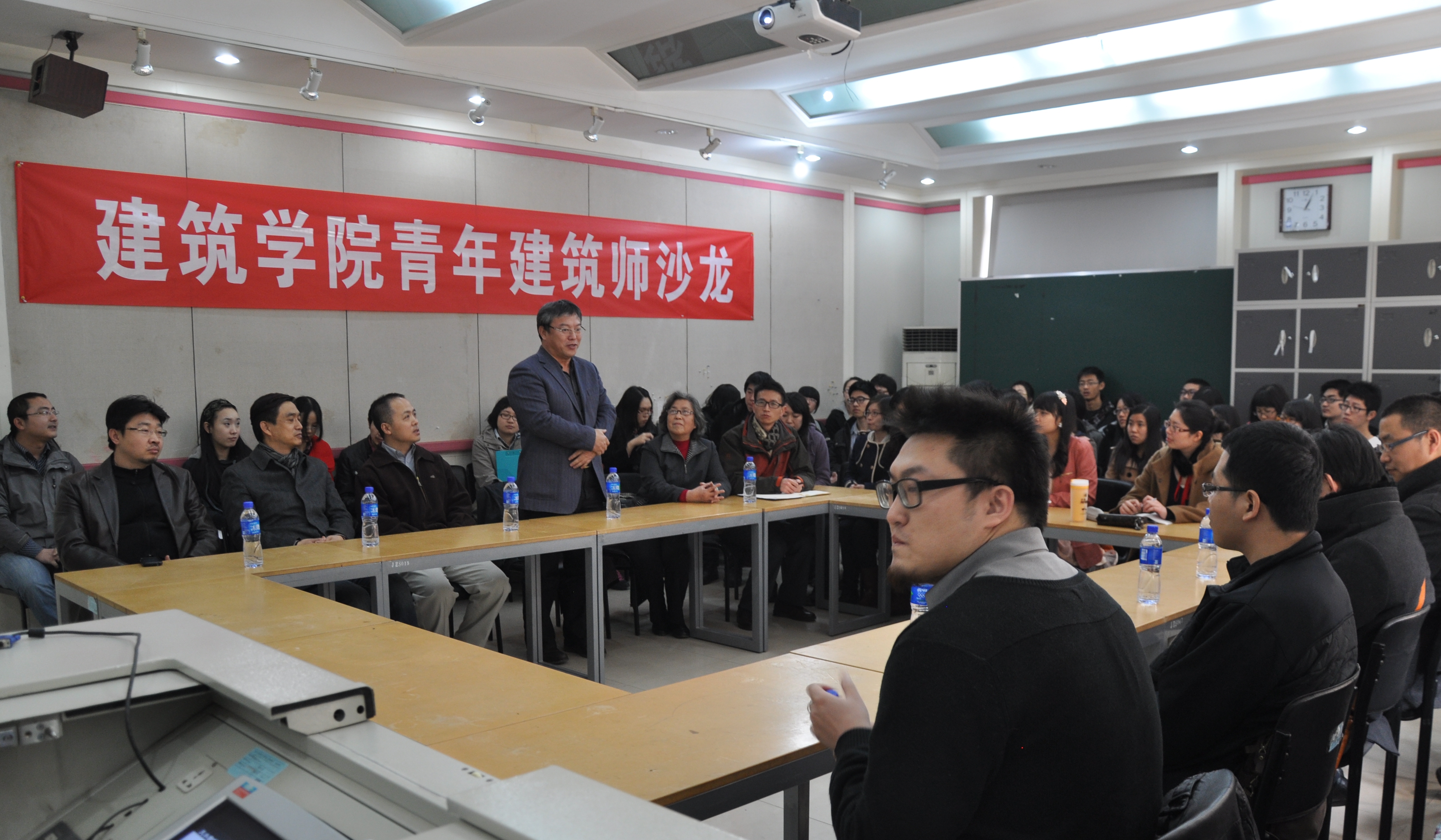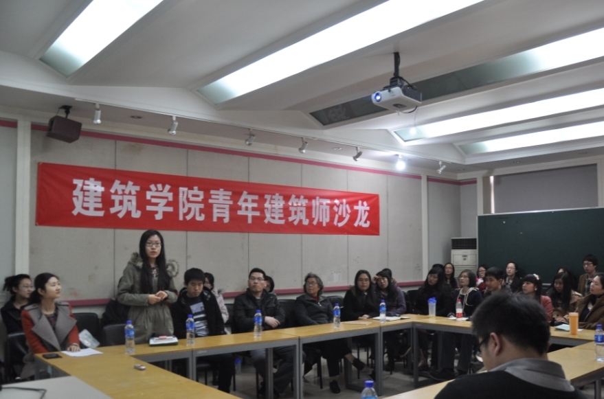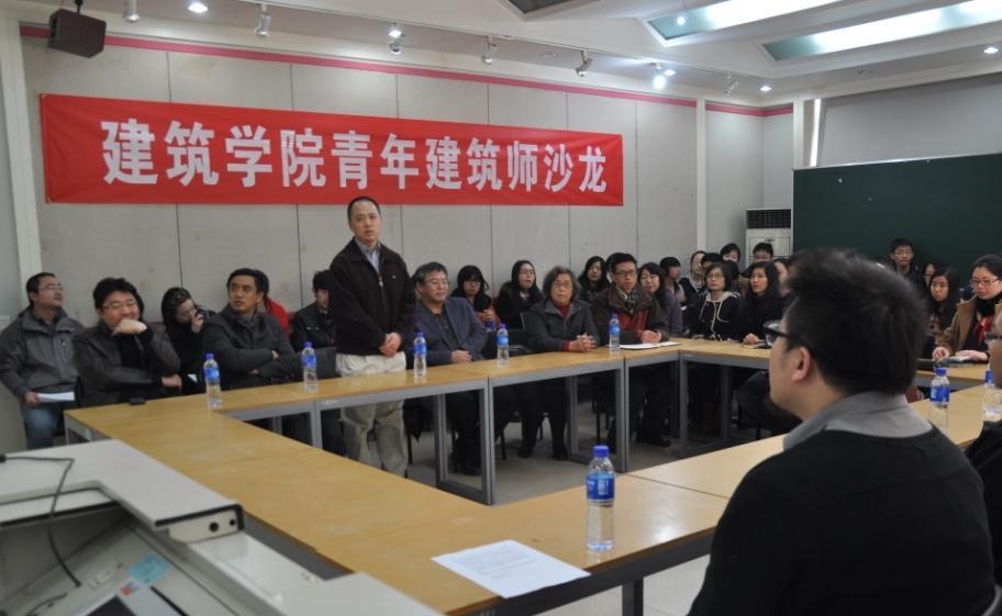 的广大研究生、本科生参加了本次活动。本次活动邀请到的是来自中国建筑设计研究院的苏童、赵园生、于洋、郭翔、韩高峰五位青年建筑师,他们都是我校优秀的毕业生,此次回到母校,给在校的师弟师妹们带来了一场精彩的学术交流。