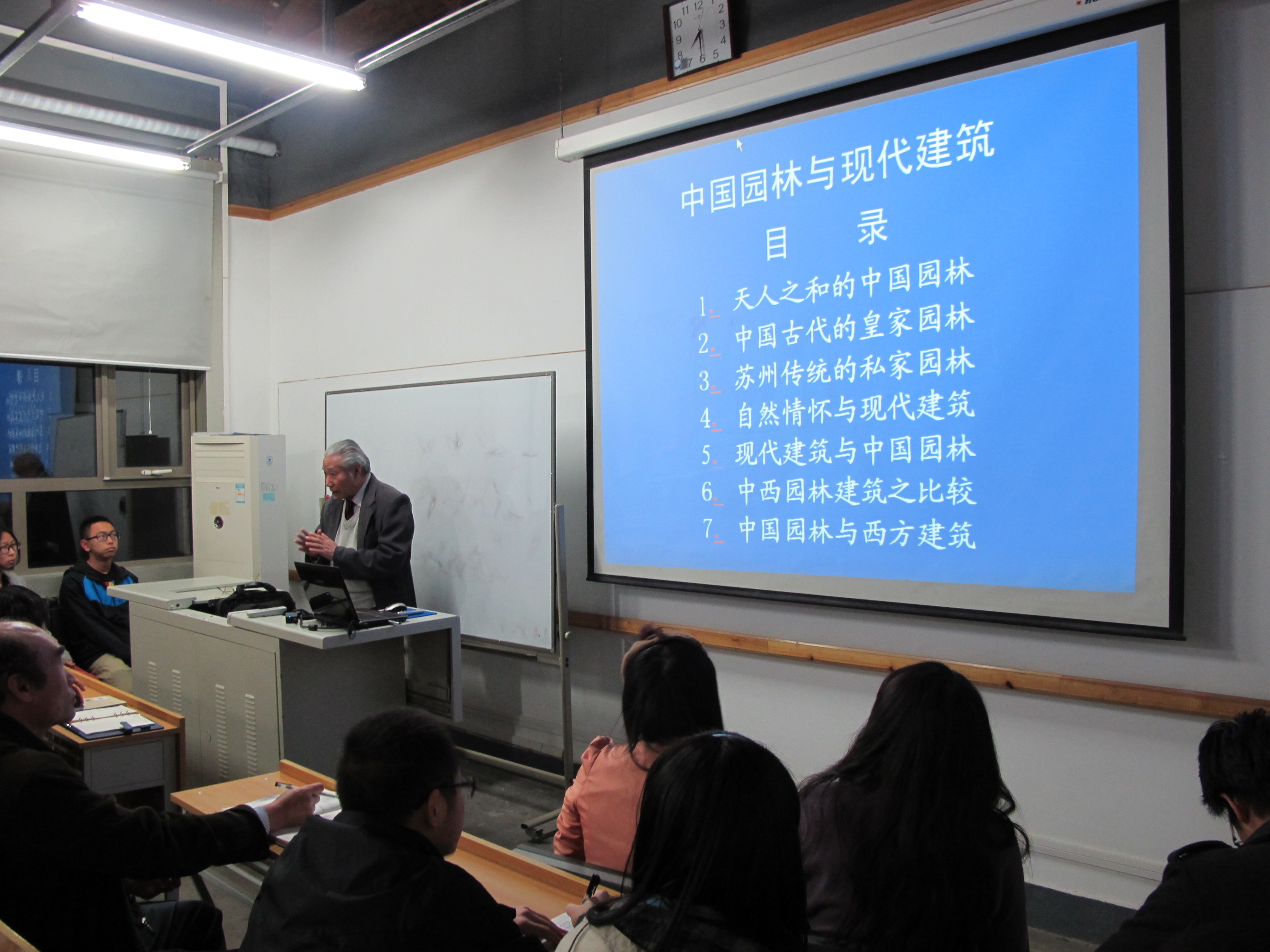 举办了一场题目为“中国传统建筑原理”的学术讲座。韩增禄教授主要从事哲学、自然辩证法、科学方法论、易学与建筑文化等方面的教学与研究工作,是中国自然辩证法研究会理事,全国科学方法论专业委员会主任委员,全国易学与科学专业委员会副理事长,是当之无愧的学术泰斗。讲座于4月15日晚19:30分开始,持续近两个半小时,分为主题讲解和观众提问两个环节。在第一个环节,韩教授围绕中国园林与中国建筑展开演讲,穿插传统易学原理的内容,结合实例,深入浅出,使同学们收获了丰富的知识,受益匪浅。观众提问环节,韩教授耐心解答了同学们的各种问题,解开了同学们心中的困惑。