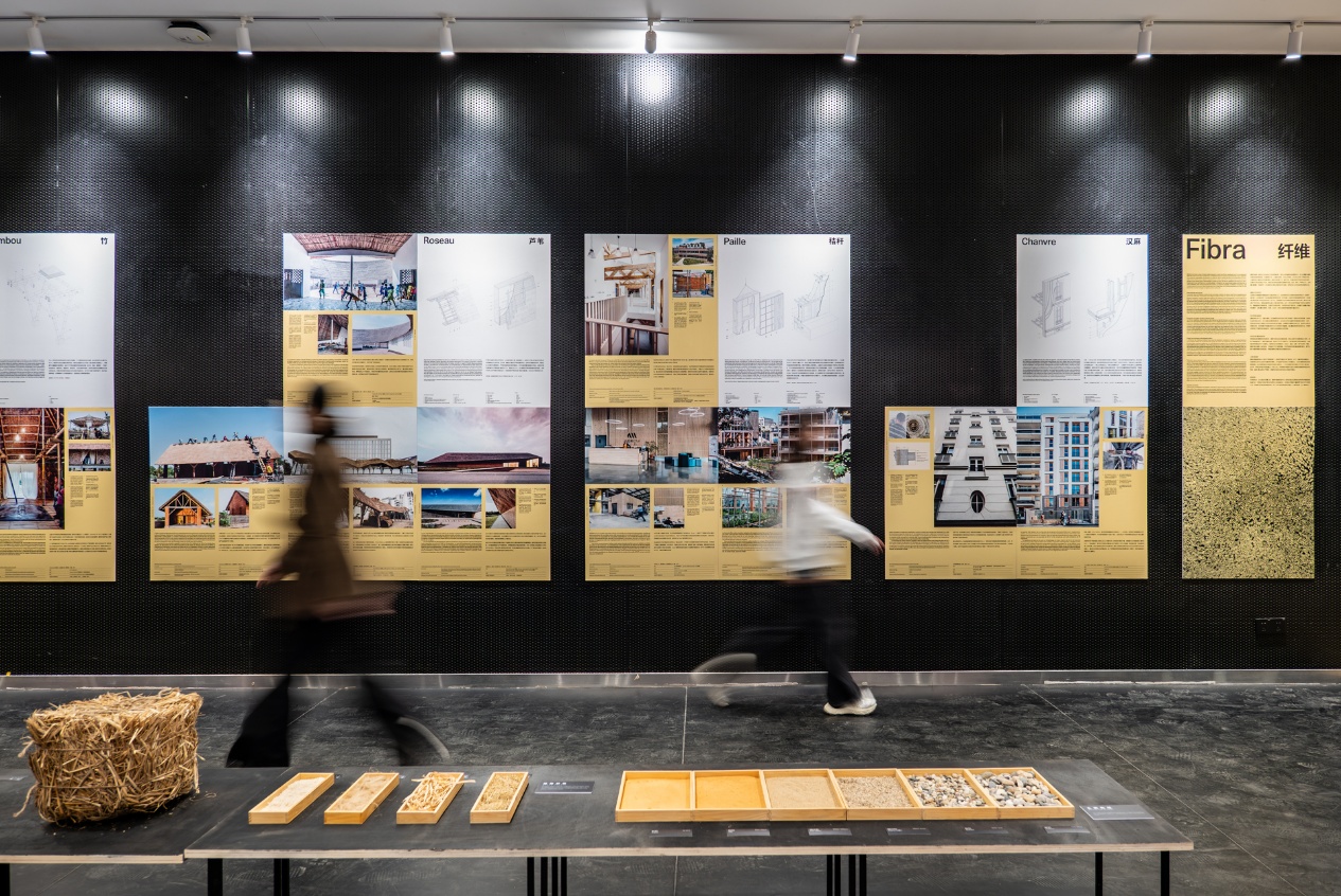 本次“TerraFibra自然建筑展”展出的40个入围项目展板由法国巴黎城市规划与建筑中心(Pavillon de l’Arsenal)、amàco 协会及 Les Grands Ateliers 联合策划制作,并由法国驻华大使馆购得版权,在中国巡回展出。展板集中呈现了夯土、土坯、竹材、稻草等自然材料在不同气候、地域与社会背景中的创新应用,诠释了自然材料在降低建筑碳足迹、回应气候变化与推动可持续发展方面的应用潜力。为配合展览内容,我校策展师生团队结合设计课程训练,补充制作了相关材料科学等内容以及部分实物展品。