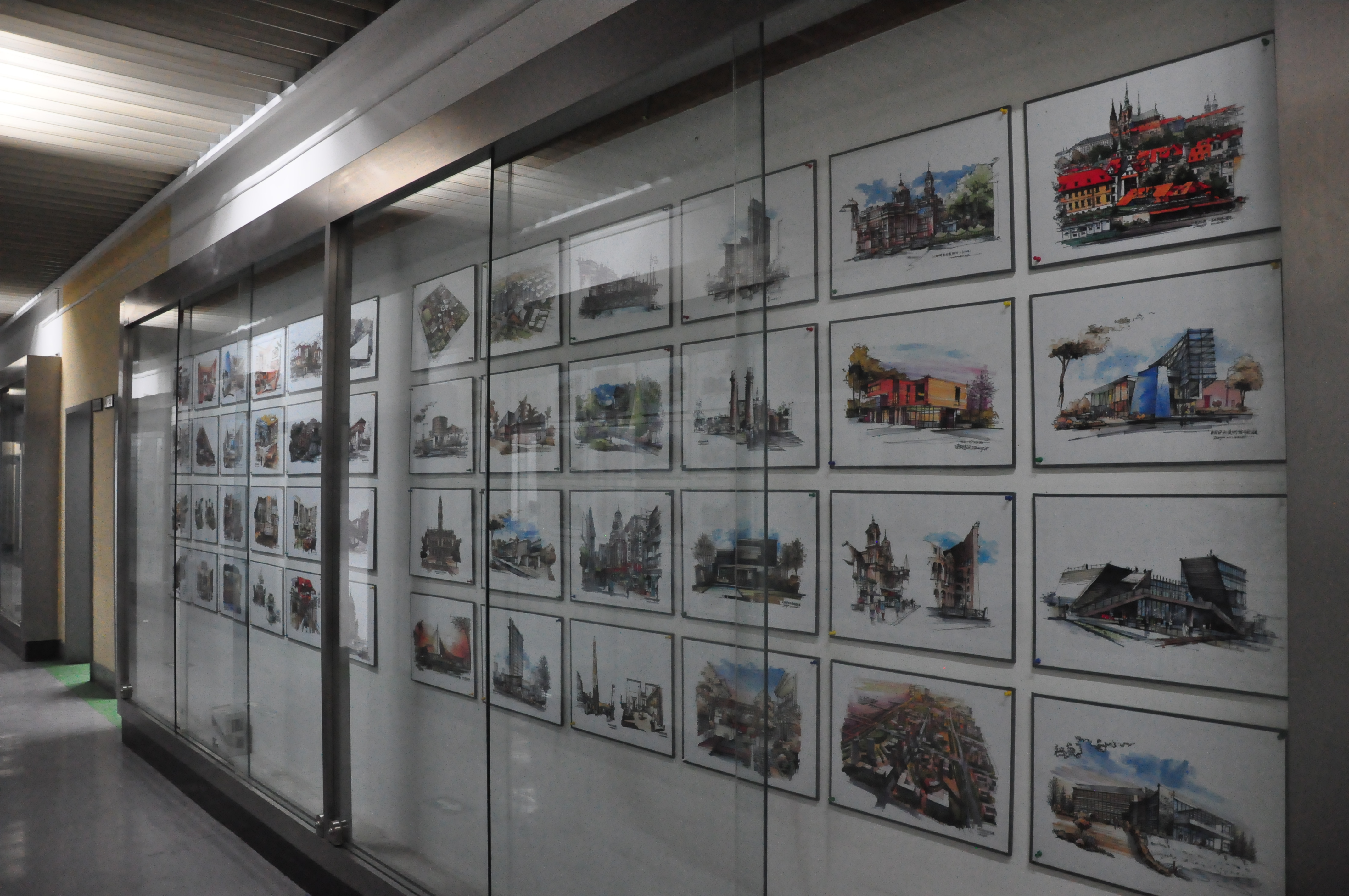 团总支学生会与EMAD设计手绘机构共同举办的为期半个月的的马克笔手绘表现作品画展活动在教学四号楼二层展出。