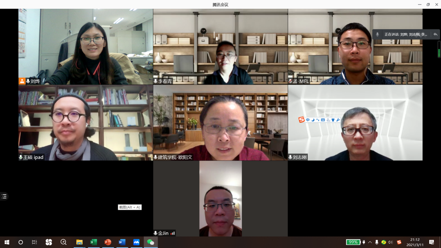 召开了我校主办的“中国建筑学会科普项目2021年建造节”的线上筹备会议。常务副院长金秋野、副院长李春青、建筑系城市设计专业负责人欧阳文、院长助理刘烨、建筑系孟璠磊和教学管理办公室刘志刚、王宇石参加了会议。会议特别邀请了本次建造节联合出题人职业建筑师王硕老师参加会议。