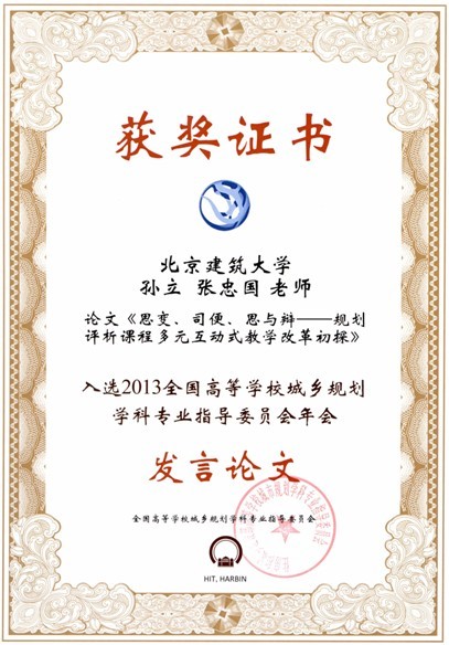 2013年度全国城乡规划学科专业指导委员会年会于9月25日—29日在哈尔滨工业大学隆重举行,来自全国包括港澳台的百余所院校的近四百名教师代表参加了此次盛会。在专指委委员会上,我校专指委委员张忠国教授汇报了所负责的北京片区所办城乡规划专业院校的学科专业建设情况,并应邀交流了由我校牵头从2011年开始主办的全国六校城乡规划联合毕业设计的进展情况。会上,正式发布了《全国高等院校城乡规划本科指导性专业规范》,这本规范对于全国已办城乡规划专业的188所院校和正在申办城乡规划专业的院校来说,具有重要的指导意义,张忠国教授作为编制人员之一参加了专业规范的编制工作。