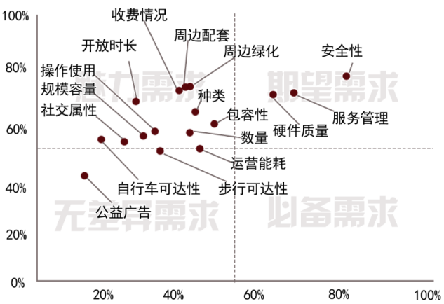 图3 居民常去体育设施与15分钟步行可达性满意度交叉表