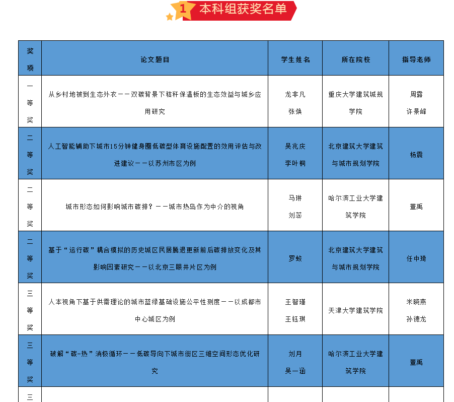 任中琦老师率队斩获二等奖1项(本科组),杨震老师率队斩获二等奖1项(本科组)和优秀奖1项(硕博组)。由于学院和参赛师生的共同努力,我校获优秀组织奖。本次获奖展现了我校在三师培养、三规进课堂、数字化和绿色建筑特色、课程思政等改革举措下的教学成果和精神风貌。