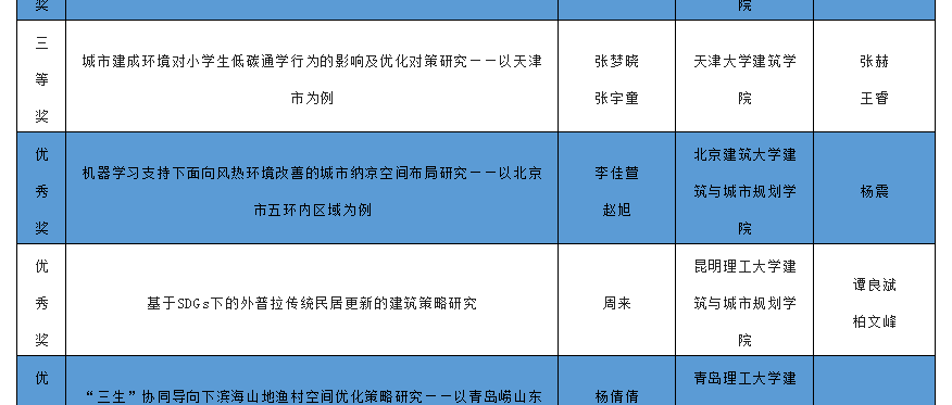 建筑系任中琦、规划系杨震两位青年教师率队与东南大学、天津大学、哈尔滨工业大学、重庆大学、西安建筑科技大学、中央美术学院、浙江大学、武汉大学等业内知名院校的参赛队伍同台竞技并脱颖而出,获得了数项大奖。