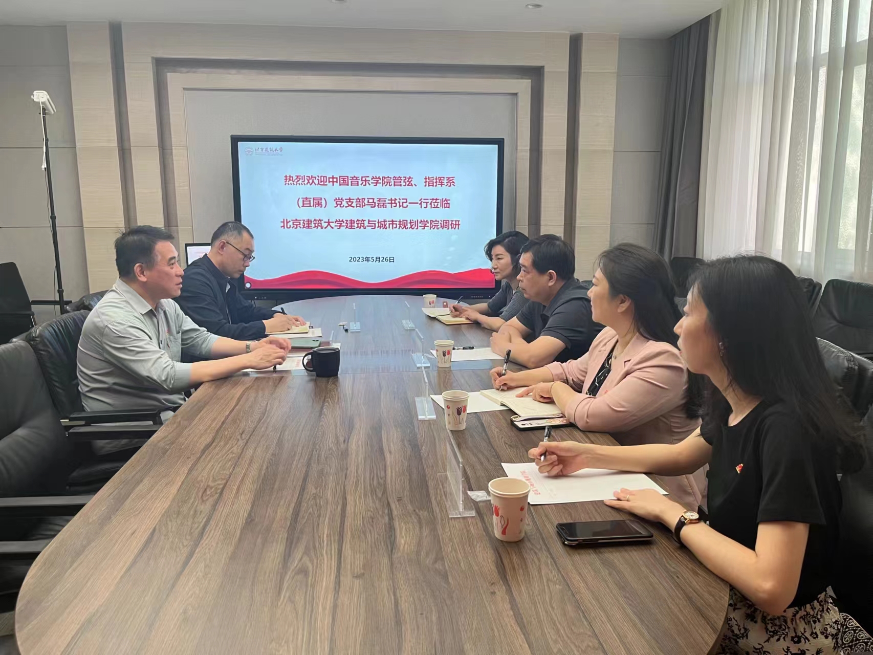 5月26日,中国音乐学院管弦、指挥系(直属)党支部书记马磊一行来我校努努影视 调研,学院党委书记、专职组织员参加调研。