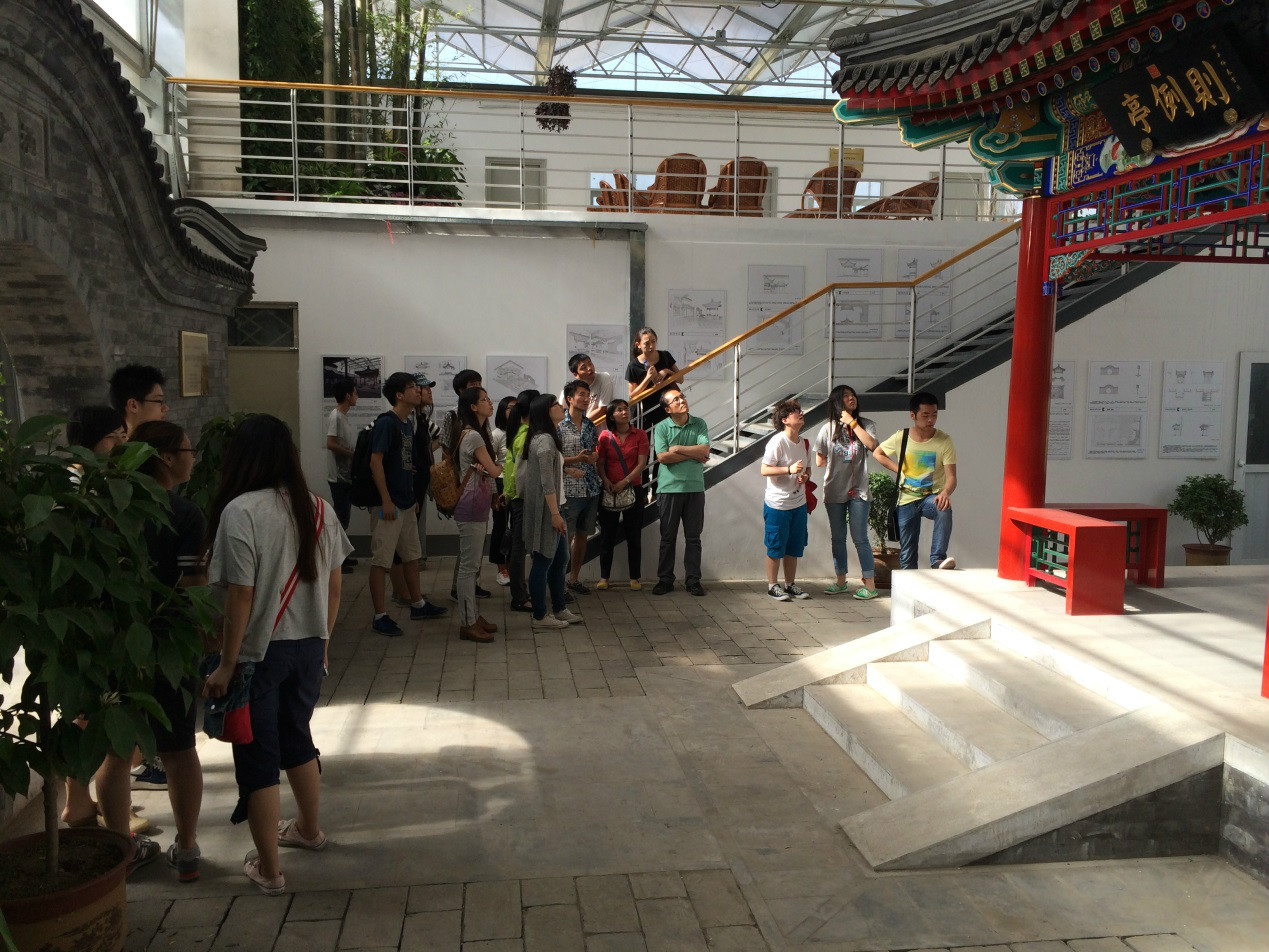 随后,我们参观了北京林业大学园林实验教学示范中心,该示范中心规划建筑面积1344平方米,由园林工程实验室、建筑模型实验室、花卉实验室、仿古建筑、温室苗床和植物展示区等六个部分组成。重点了解了南轩北亭考工记,尤其是园林古建北式部分包括一座依据清工部《工程做法则例》卷二十二条文改订设计的四角攒尖方亭、一段带有月洞门的磨砖对缝景墙,基本涵盖了清代北京官式园林建筑木、瓦、油、画诸作工艺的主要内容。同学们了解了各部分的细节和大致构造。