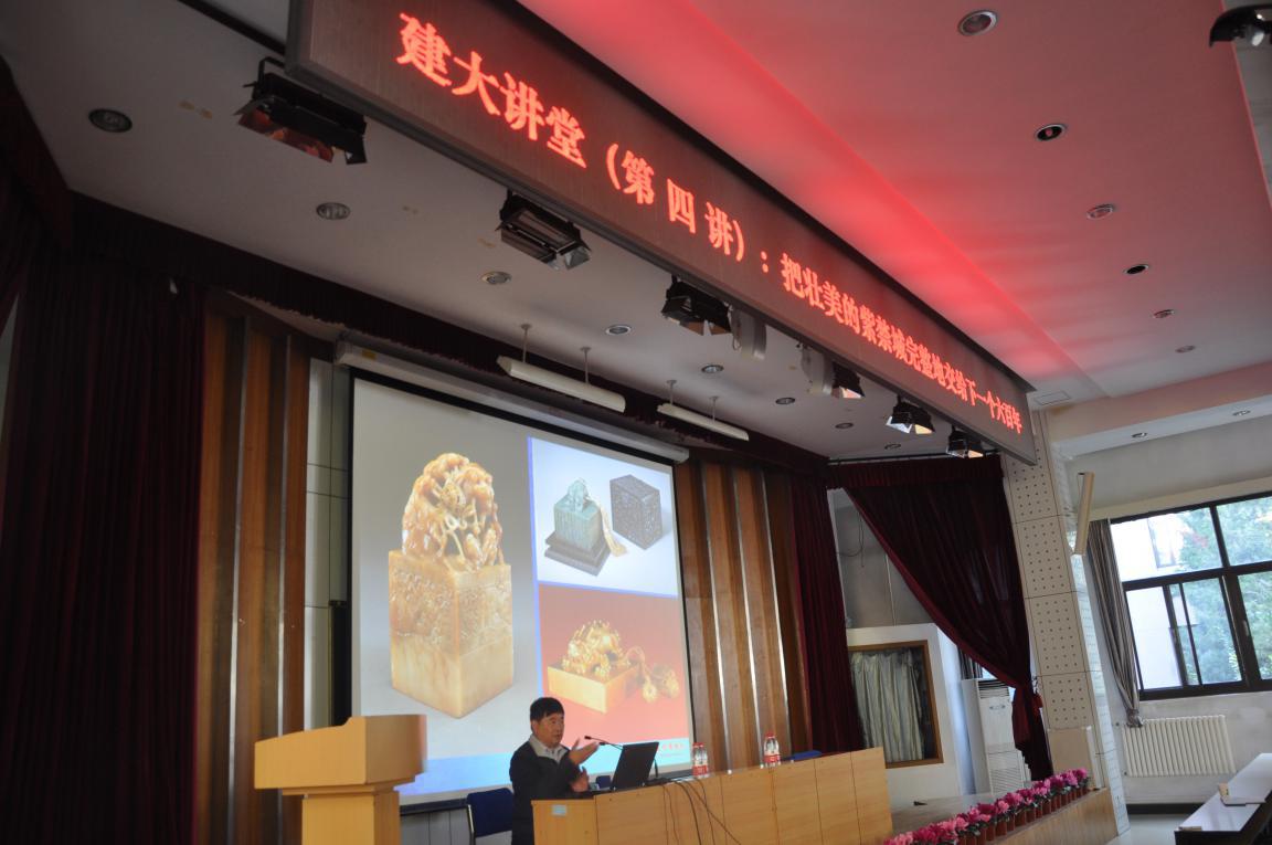 随着会场灯光渐渐暗下,单院长通过幻灯片的形式将故宫的整体面貌清晰地呈现在了大家的面前。其清晰的轴线、开阔的格局、壮美的建筑、严谨的形制、绚丽的彩绘、生动的空间、精美的装饰、独特的色彩、真实的信息、典雅的园林、丰富的景观、和谐的环境都让人深深感受到故宫与其它国家,其他城市建筑的不同。人们的目光牢牢地聚焦在前方的大屏幕上,看着故宫走过了六个世纪的点滴变化,纷纷为故宫的雄伟壮丽所震撼。与师生们一起穿梭于时间长河的单先生脸上也不时闪现身为“故宫掌门人”的自豪笑容。他深情地说道:“故宫绚丽的色彩,不仅仅是因为油漆的功劳,更是因为那种色彩是历史的沉淀,是中国传统文化的一种象征。
