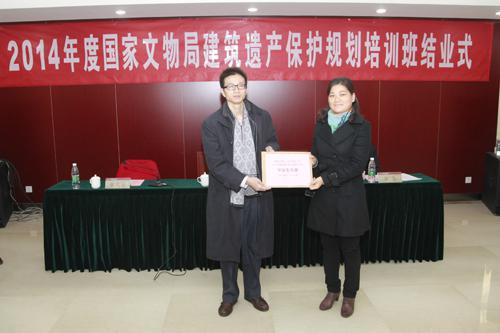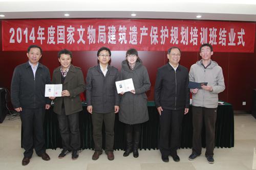 的领导、教师表示诚挚的谢意。并指出开展建筑文化遗产保护规划培训,是根据新时期文物事业的发展目标和全国文物系统的重点任务制定的。本次培训以文物保护规划编制为核心教学内容,提高规划人员文物保护规划编制的水平,对促进文物保护队伍的专业化、先进化、科学化,完成国家文物事业发展“十二五”规划具有重要的意义。并寄语学员,回到各自工作岗位后,要将培训收获应用到工作中去。以此次培训为台阶、为新起点,为中国文化遗产事业谱写新的华章!