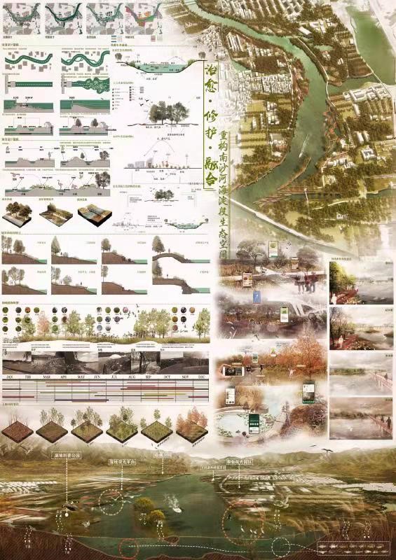 本次大会还下设学生设计竞赛,我系傅微老师指导的2017级本科生梁译元、陈斯喆、李双一、朱文君、王忆南等同学的作品《治愈, 修护,融合—重构南沙河海淀段生态空间》从数百份参赛作品中脱颖而出,荣获二等奖。该作品从景观生态学与水文学视角,分析了南沙河海淀段生态空间面临的挑战,并通过生态修复手段促使河道生态空间得以“治愈, 修护,融合”,重塑人们与自然的和谐。这也是我系首次获得风景园林教育大会学生竞赛奖项,彰显着近年来我校本科教育质量的提升成果。