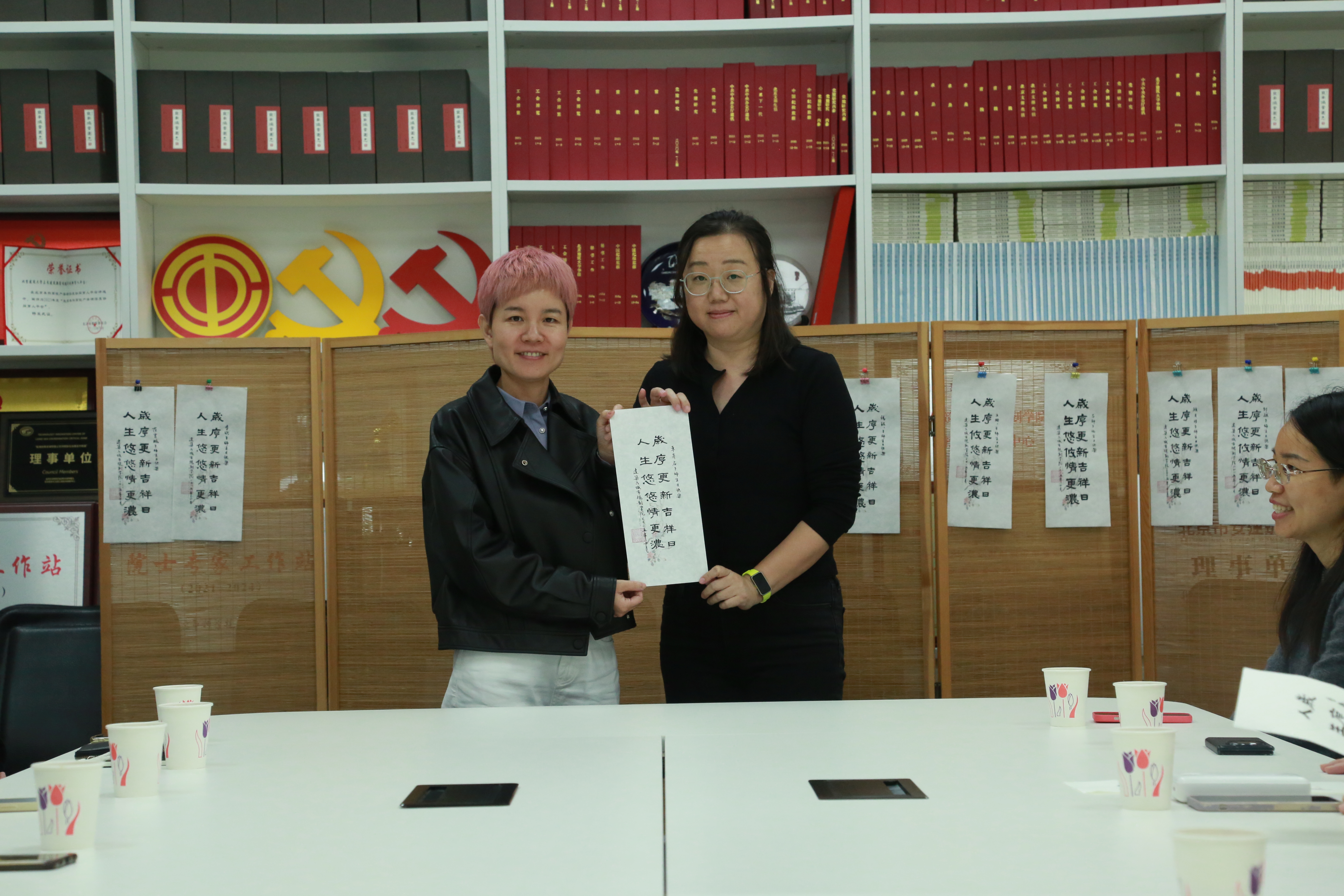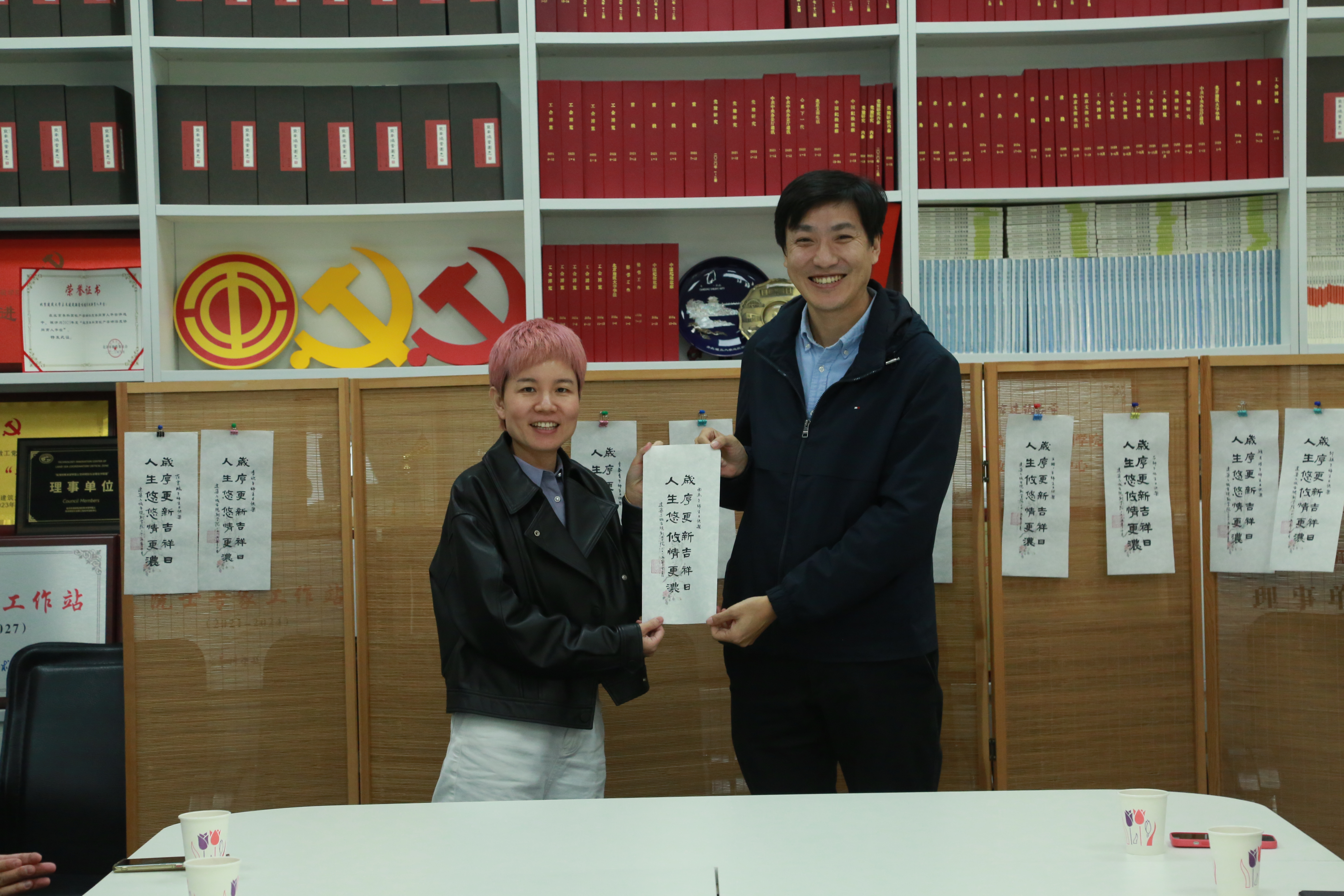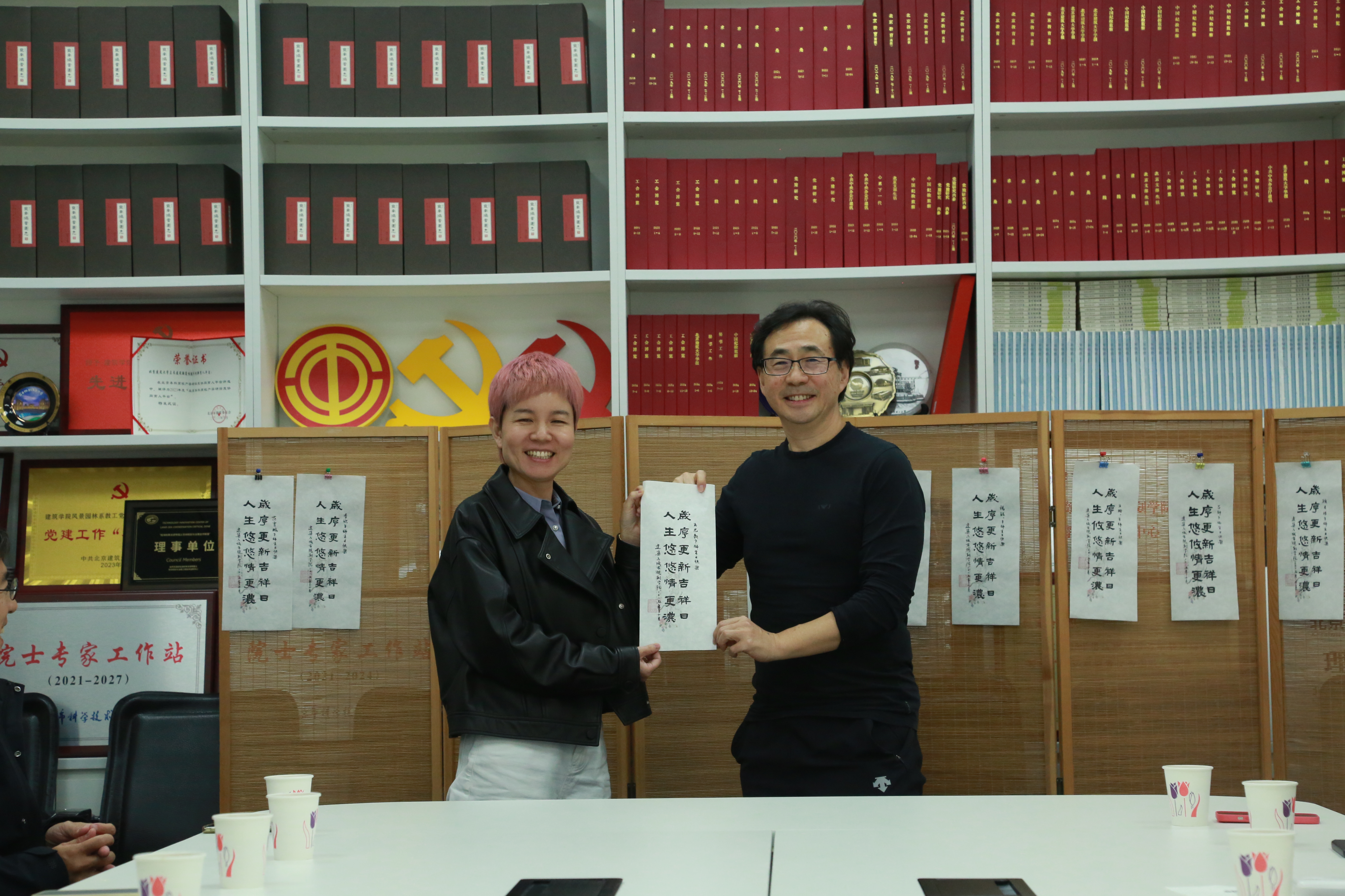 教学科研办公室陈霞妹、唐道莹两位老师携丁奇亲书福笺登场。这些以金墨书写的卷轴,既包含岁月更新吉祥日、人生悠攸情更浓的传统格言,也融入筑以载道等专业寄语。当展开福笺,让传统书法艺术与非遗工艺在方寸间完成对话。