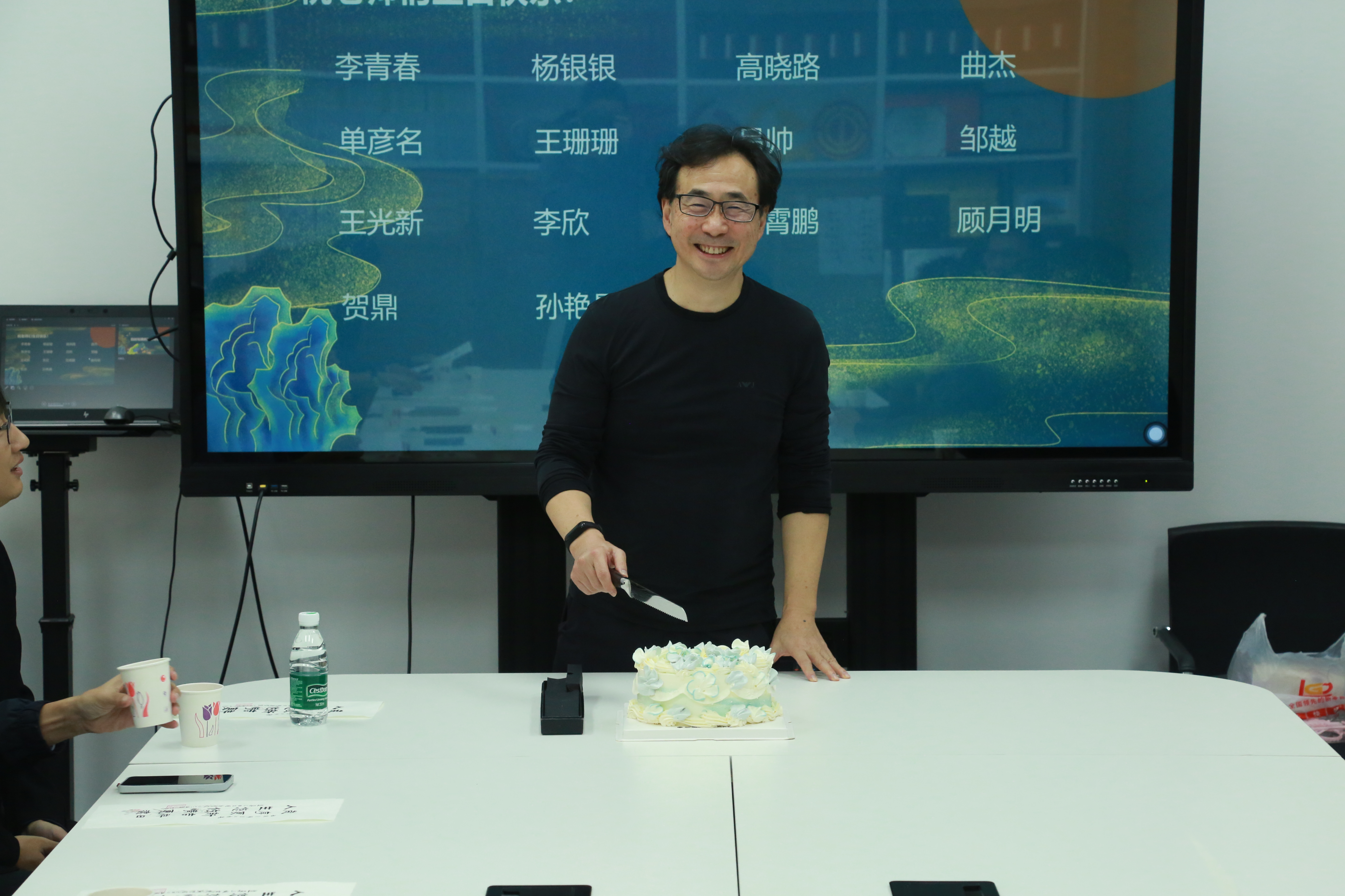 “美的分享”时刻,长桌中央的黄蓝蛋糕格外耀眼,象征智慧、梦想、团结与收获。王光新老师切下蛋糕,老师们围坐,品尝甜蜜,畅谈工作心得、生活趣事,表达对学院的感激,温馨与幸福在每个人心中流淌。