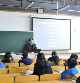 俞滨洋主任做了题为《城乡规划实施与管理》的讲座,讲座深入浅出、图文并茂、幽默风趣。通过对哈尔滨等城市规划与管理实践的介绍以及国外典型城市案例介绍,把城乡实施与管理以灵活的方式展现给听众,对我国目前的规划实施与管理的现状进行了分析与解读,提出城乡规划设计、实施与管理的“三面、五定”的总结,并对规划专业学生的未来发展提出愿景。讲座的听众以规划专业的研究生和高年级的本科生为主。讲座结束后大家踊跃发言提问,气氛热烈。