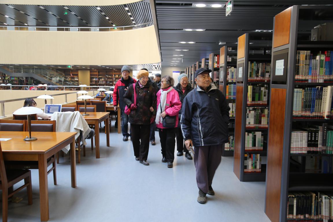 组织退休教师赴大兴校区参观校园建设,实地考察了图书馆、四合院、膜体育馆、大学生活动中心等空间环境。