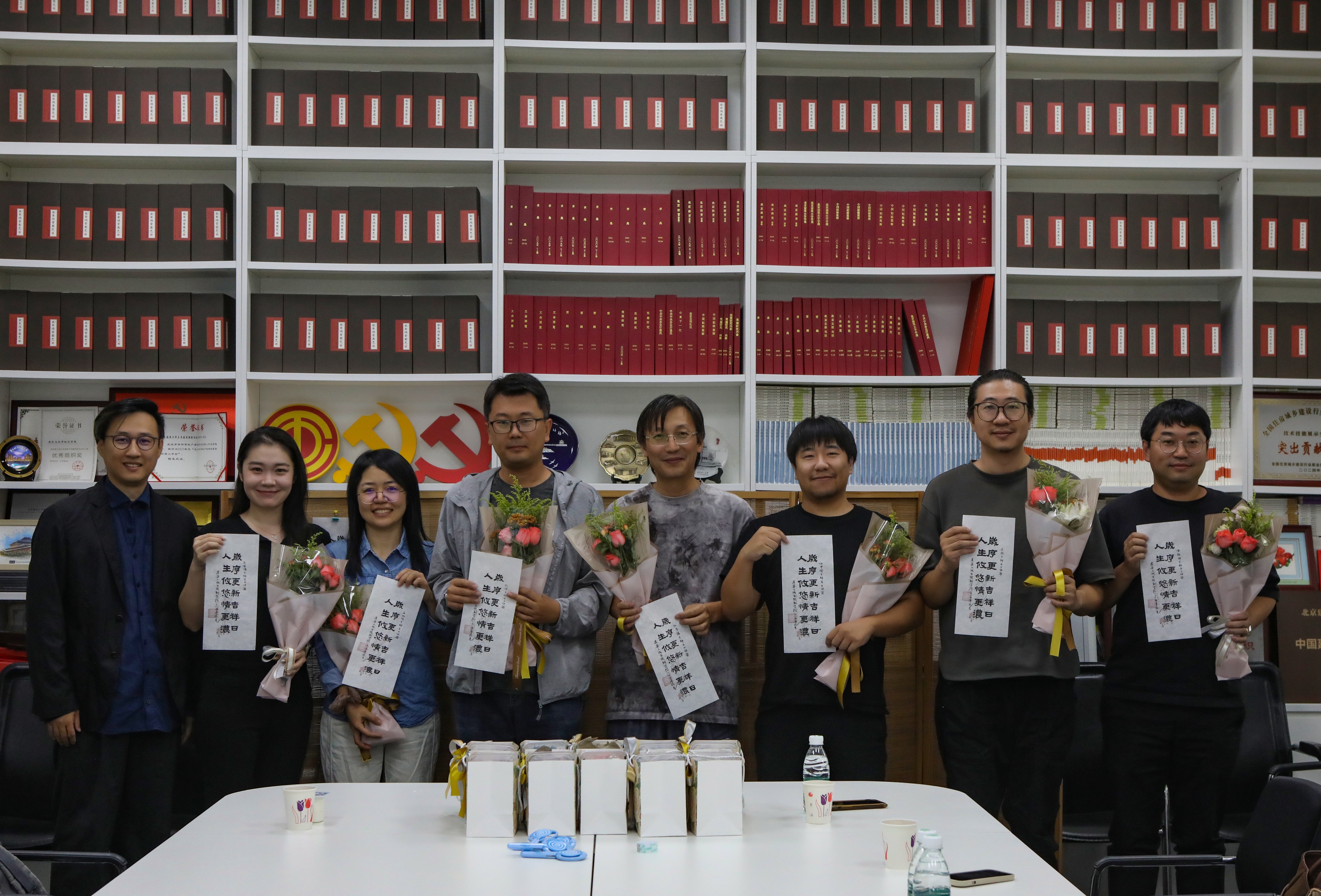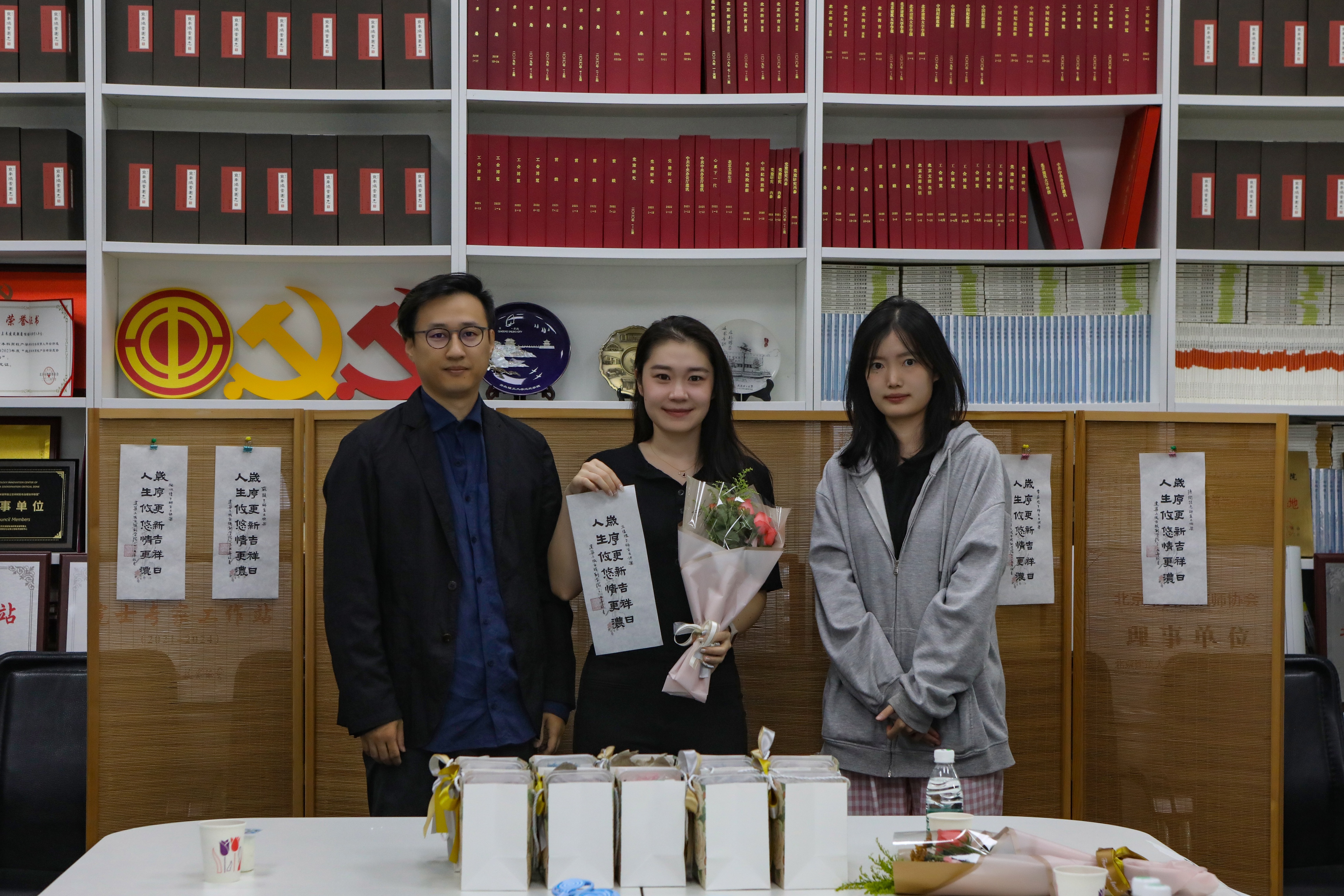 “美的祝福”环节,何立新书记代表学院为寿星老师们送上生日的祝福。吕帅老师为大家送上由丁奇老师倾情书写的福笺。“岁序更新吉祥日,人生悠悠情更浓”的暖心寄语,成为生日会的美好珍藏。适逢“生日月”与“教师月”,学生代表为老师们献上鲜花,感谢老师们的辛勤付出和默默奉献。