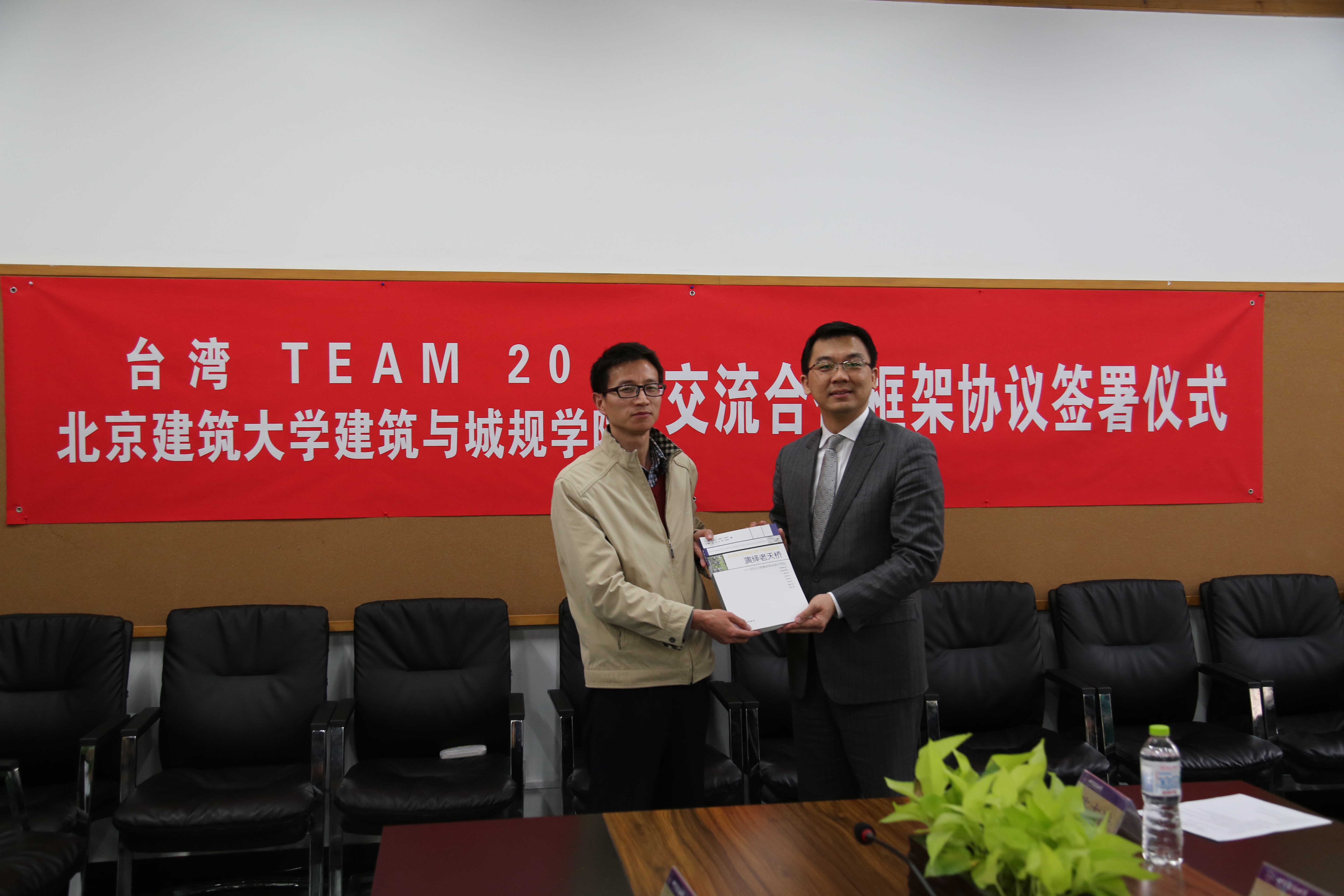 会议最后,由院长刘临安教授接受魏孝宇先生赠送的TEAM 20感谢奖杯,并与刘以善先生互赠具有两岸特色的礼物,书记牛磊与魏孝宇先生互赠书籍。在双方签署了下一阶段的合作意向后,会谈在热烈的合影中落下帷幕。